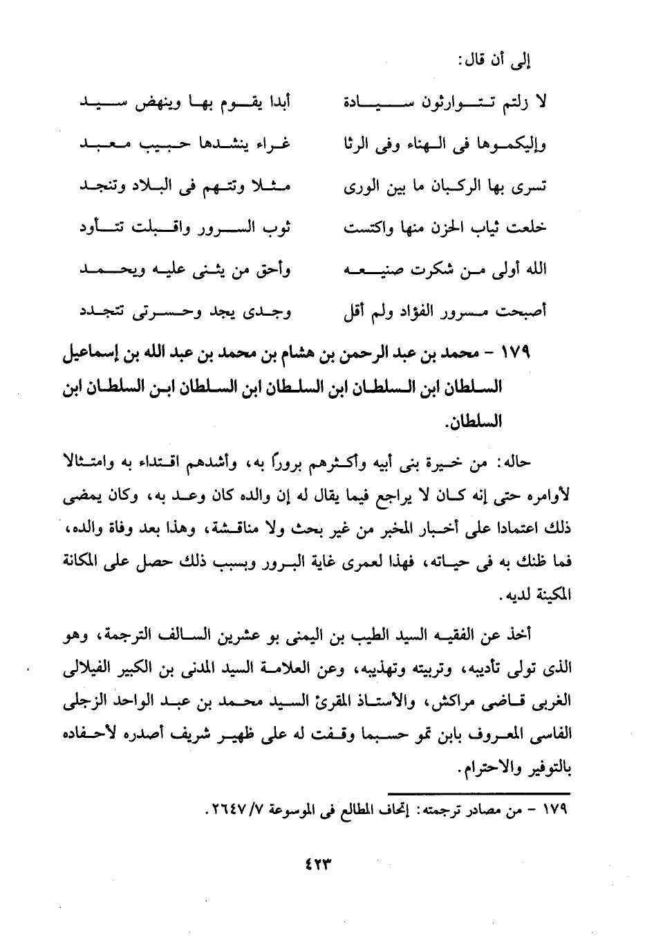 179 - محمد بن عبد الرحمن بن هشام بن محمد بن عبد الله بن إسماعيل السلطان ابن السلطان ابن السلطان ابن السلطان ابن السلطان ابن السلطان.