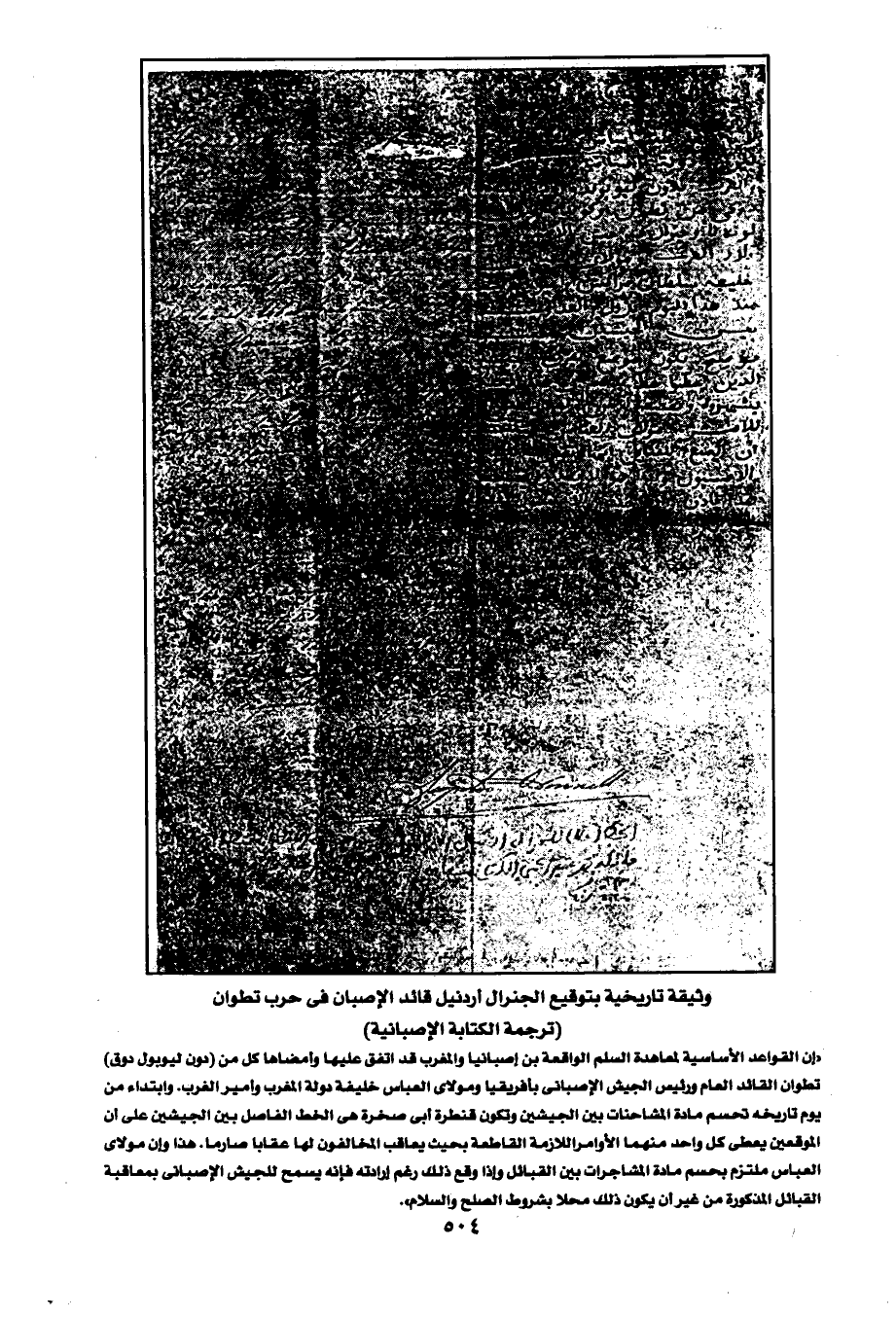 وثيقة تاريخية بتوقيع الجنرال أردنيل قائد الإصبان في حرب تطوان
