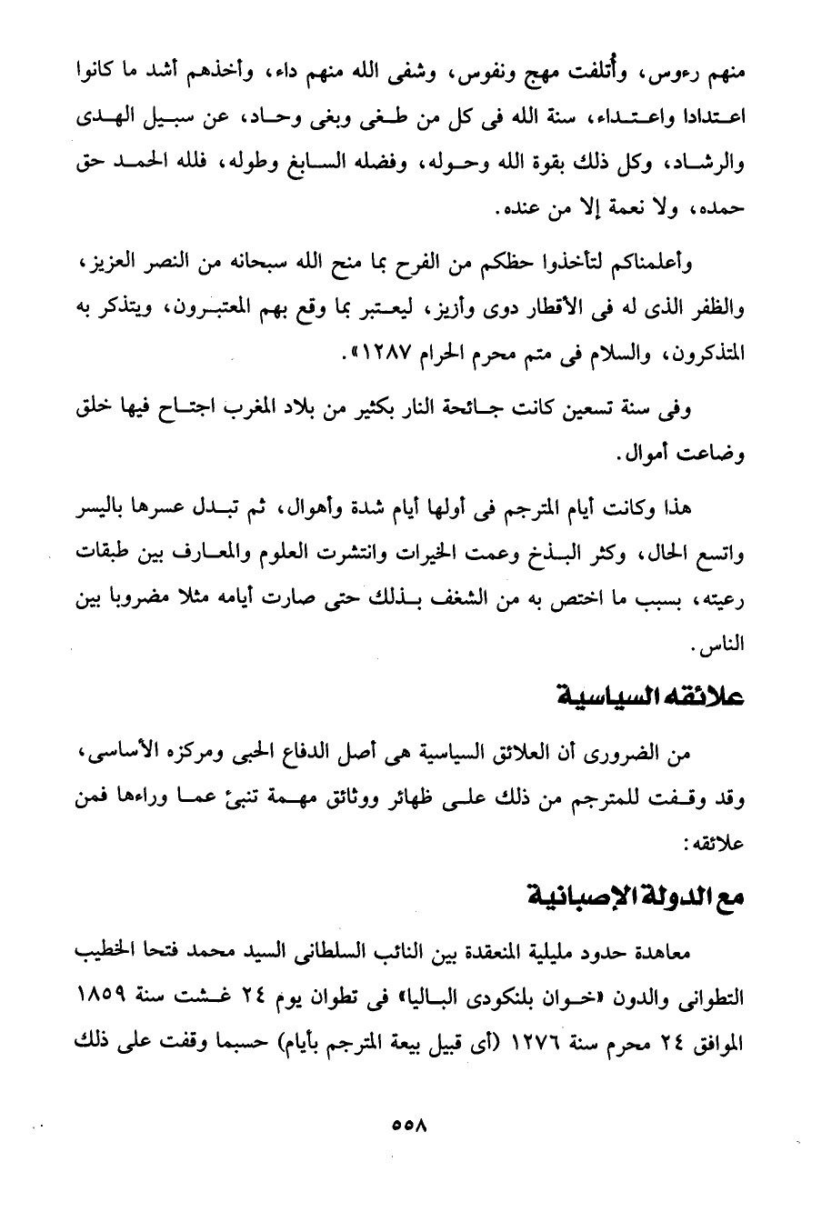 من الضرورى أن العلائق السياسية هى أصل الدفاع الحبى ومركزه الأساسى، وقد وقفت للمترجم من ذلك على ظهائر ووثائق مهمة تنبئ عما وراءها فمن علائقه: