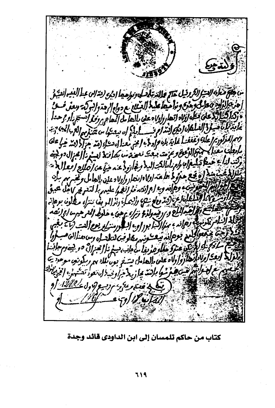 كتاب من حاكم تلمسان إلى ابن الداودى قائد وجدة