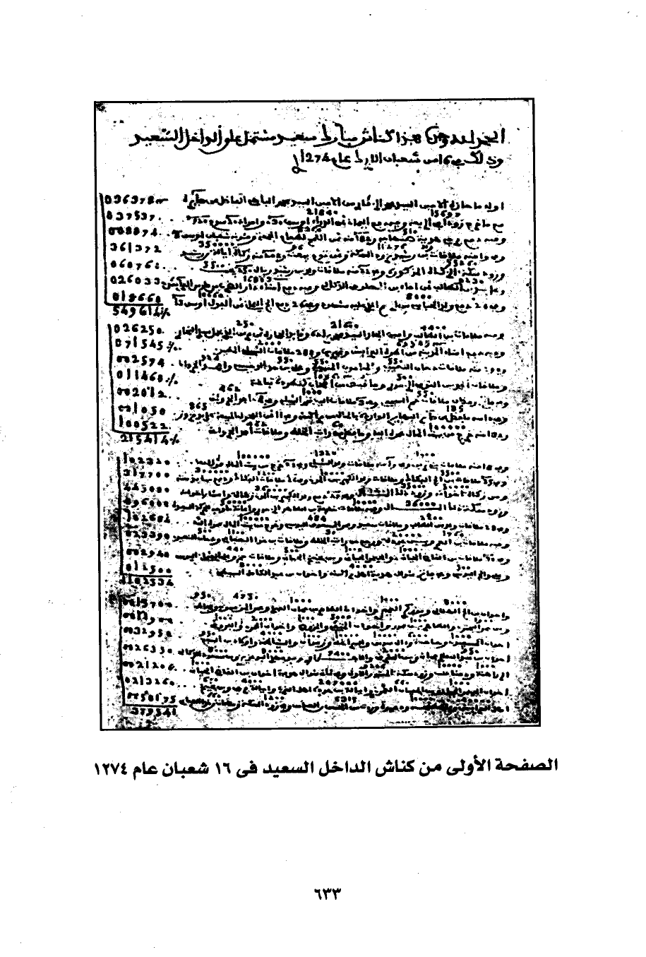 الصفحة الأولى من كناش الداخل السعيد في 16 شعبان عام 1274