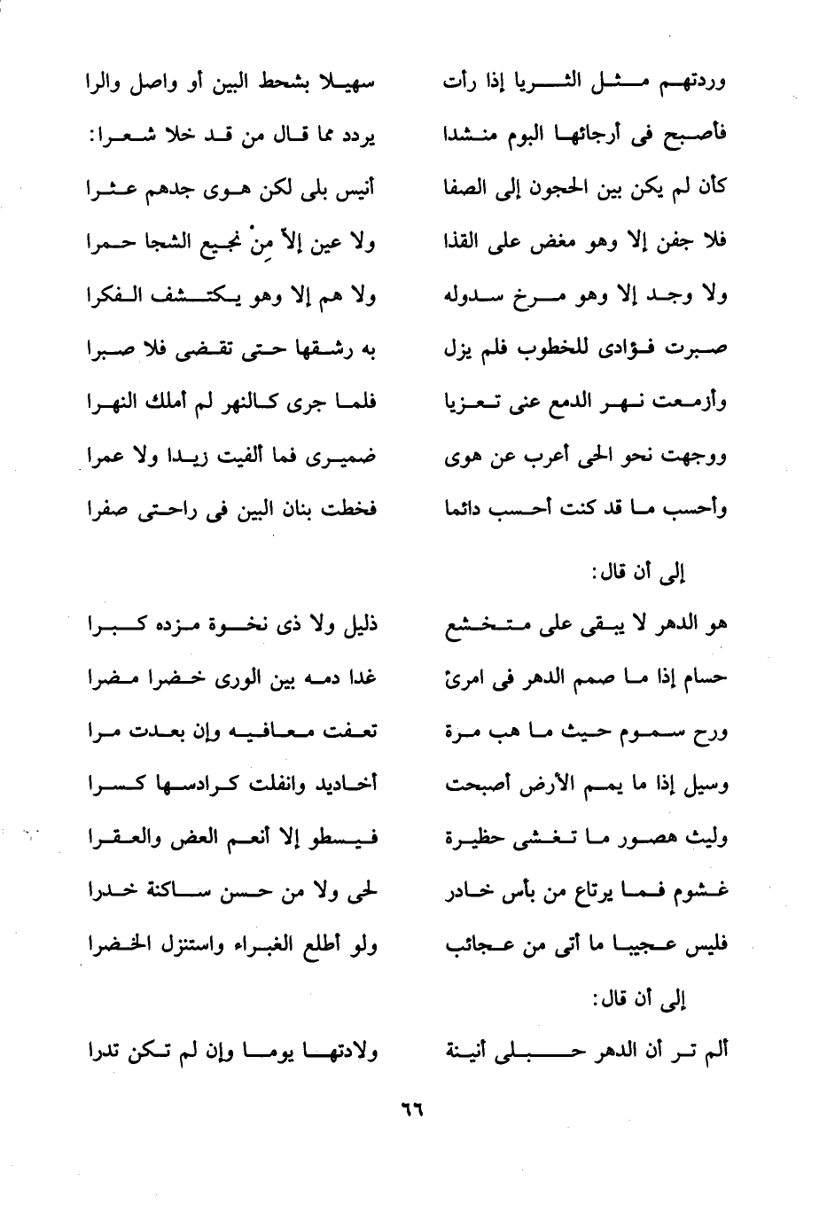 فأصبح في أرجائها البوم منشدا ... يردد مما قال من قد خلا شعرا: