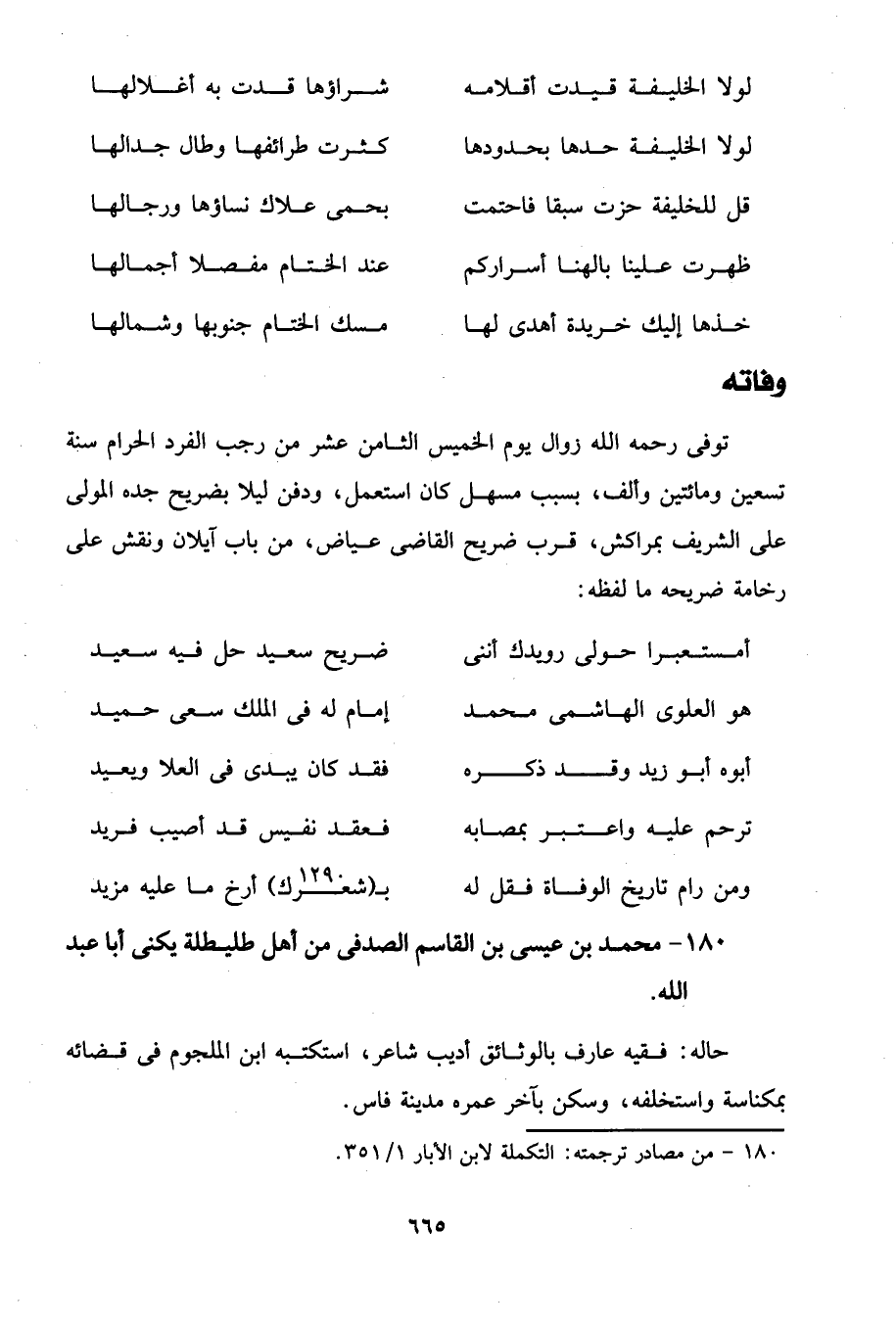 180 - من مصادر ترجمته: التكملة لابن الأبار 1/ 351.