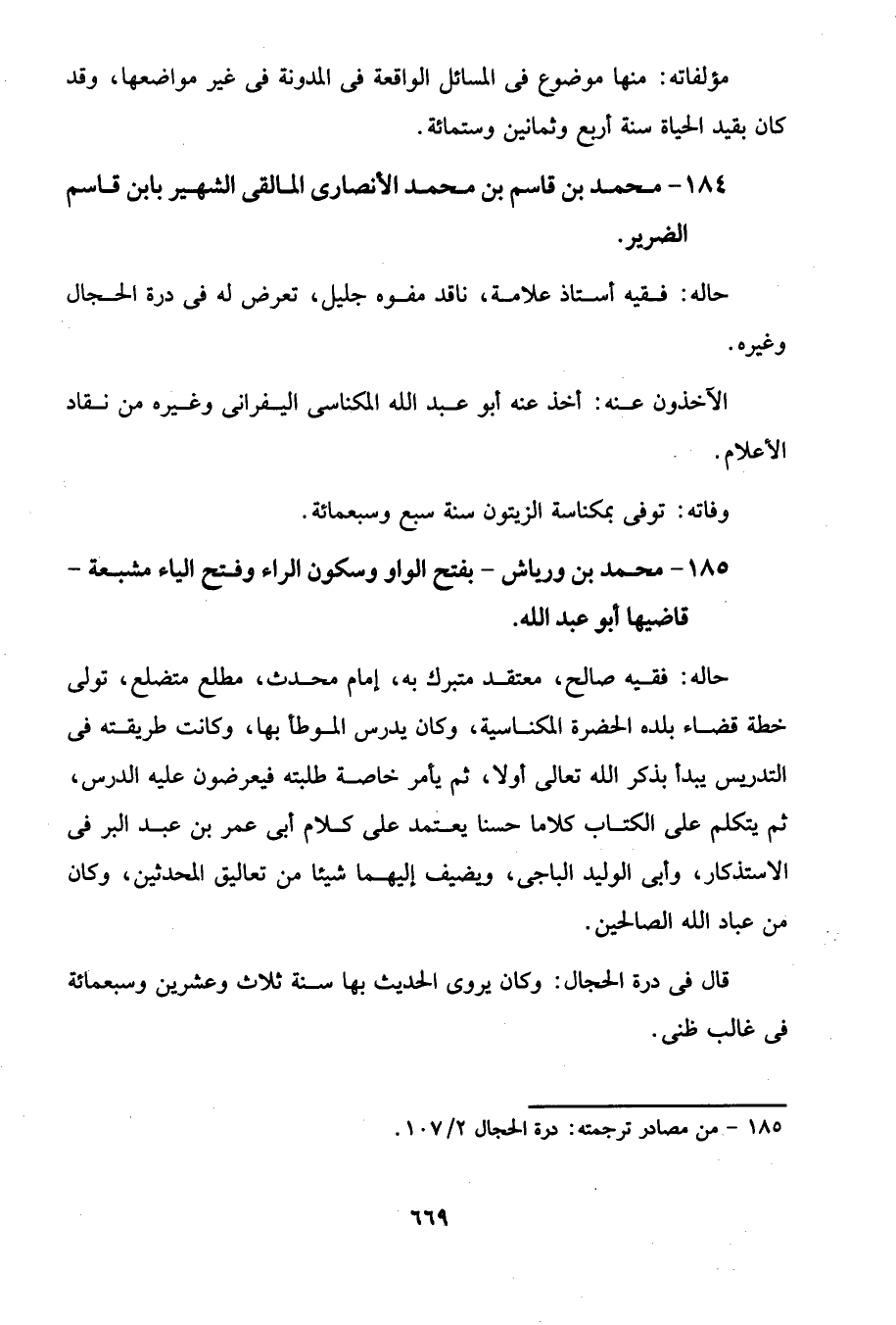 185 - من مصادر ترجمته: درة الحجال 2/ 107.