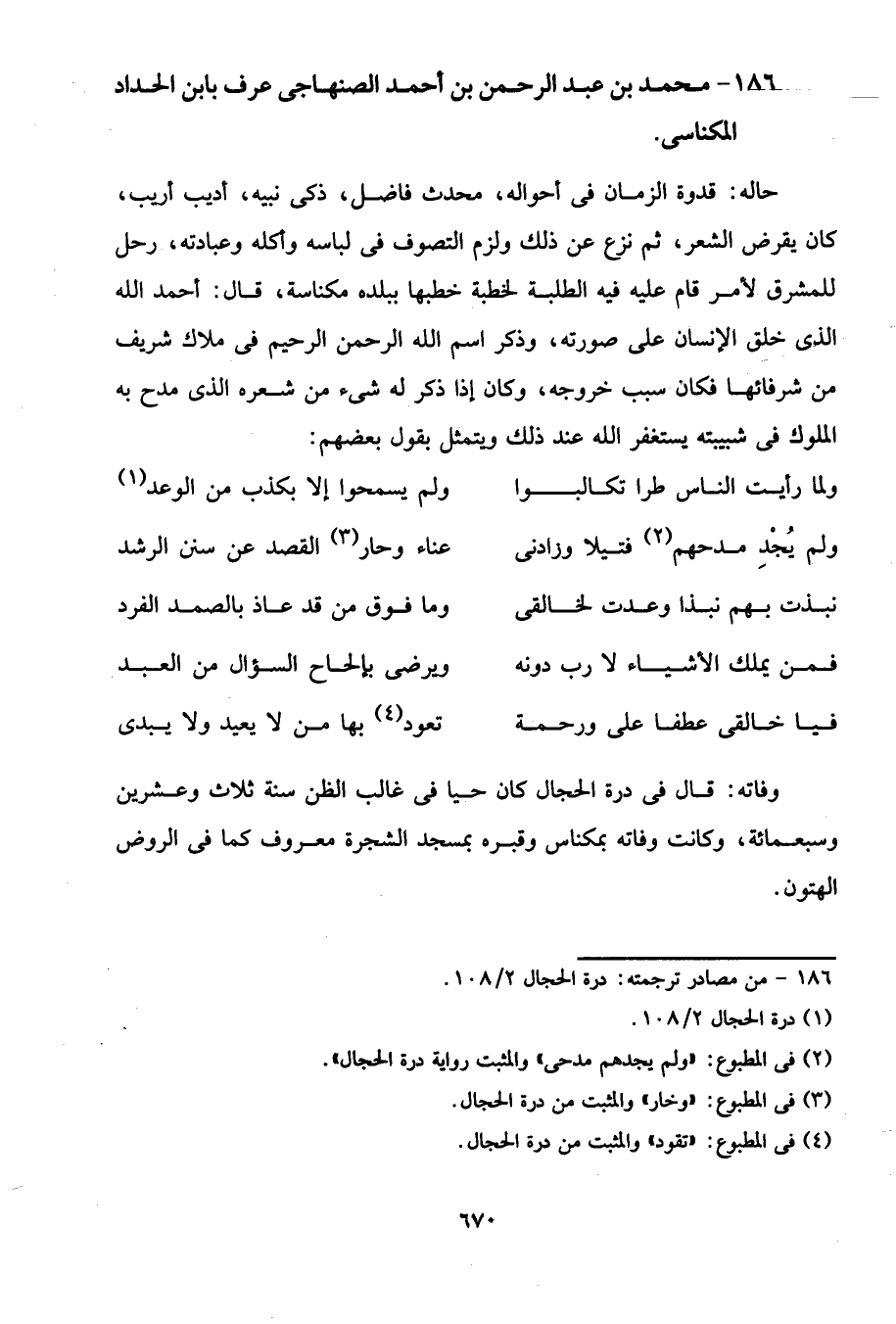 186 - محمد بن عبد الرحمن بن أحمد الصنهاجى عرف بابن الحداد المكناسى.