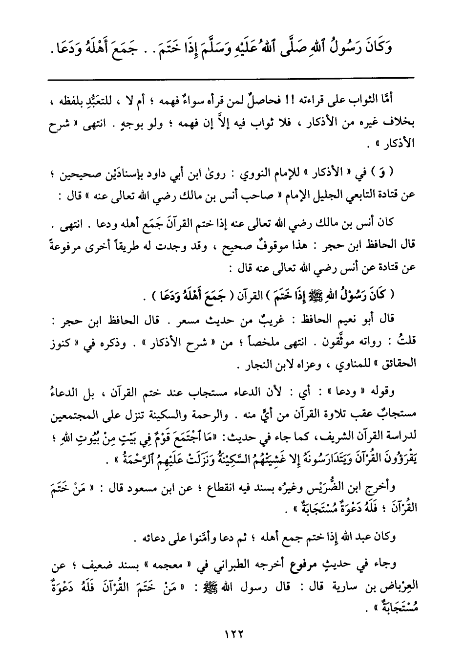 وكان رسول الله صلّى الله عليه وسلّم إذا ختم.. جمع أهله ودعا.