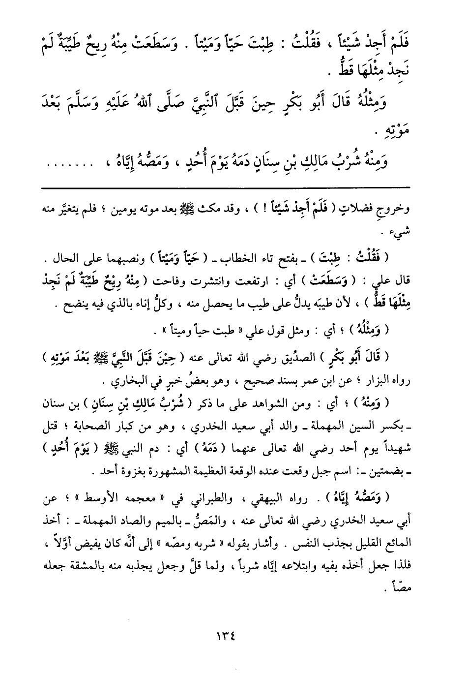 ومنه شرب مالك بن سنان دمه يوم أحد، ومصّه إيّاه، ...