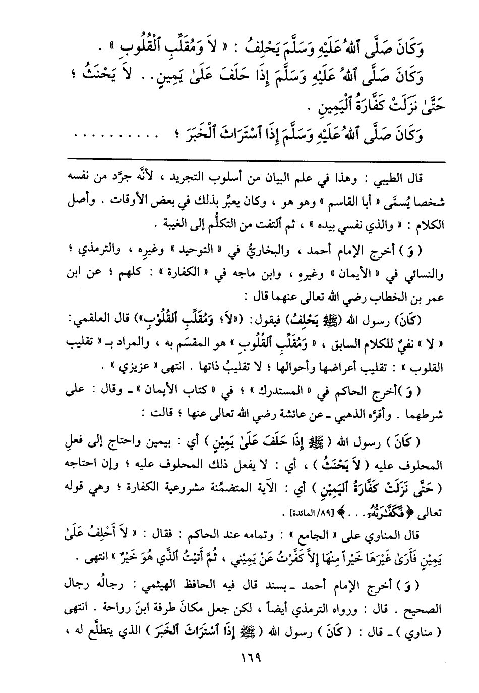 (كان) رسول الله (صلى الله عليه وسلّم يحلف) فيقول: ( «لا؛ ومقلّب القلوب» ) قال العلقمي: