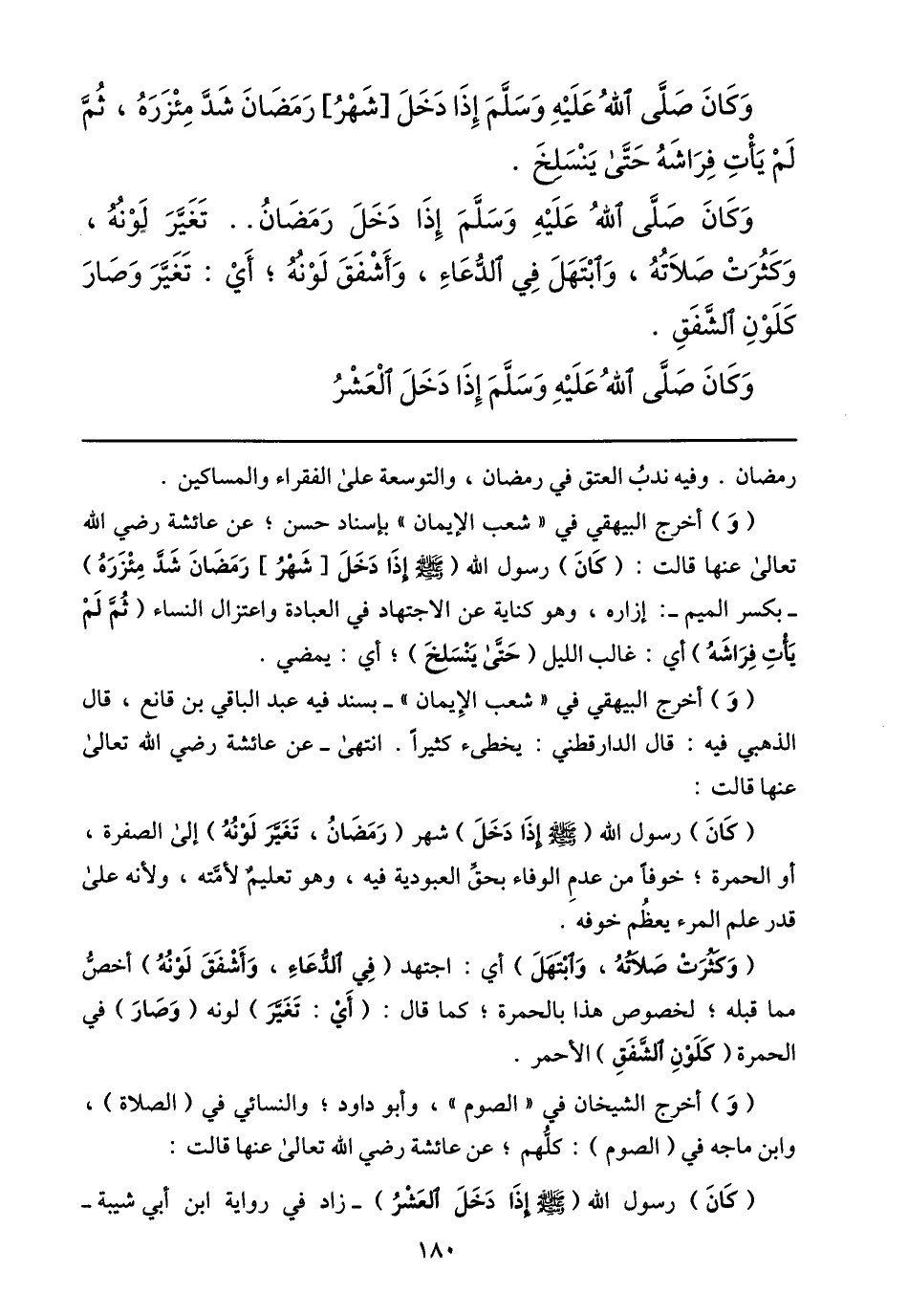 وكان صلّى الله عليه وسلّم إذا دخل رمضان.. تغيّر لونه، وكثرت صلاته، وابتهل في الدّعاء، وأشفق لونه؛ أي: تغيّر وصار كلون الشّفق.