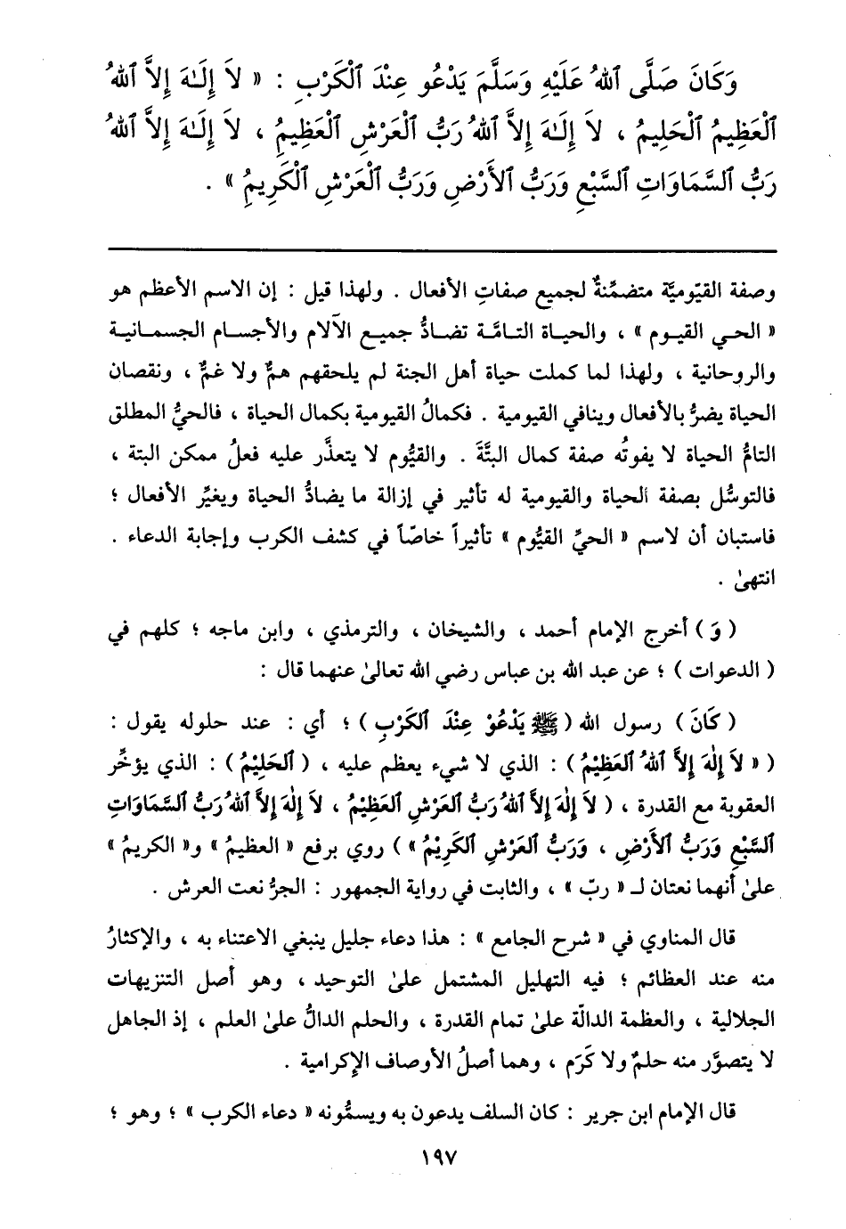 قال الإمام ابن جرير: كان السلف يدعون به ويسمّونه «دعاء الكرب» ؛ وهو؛