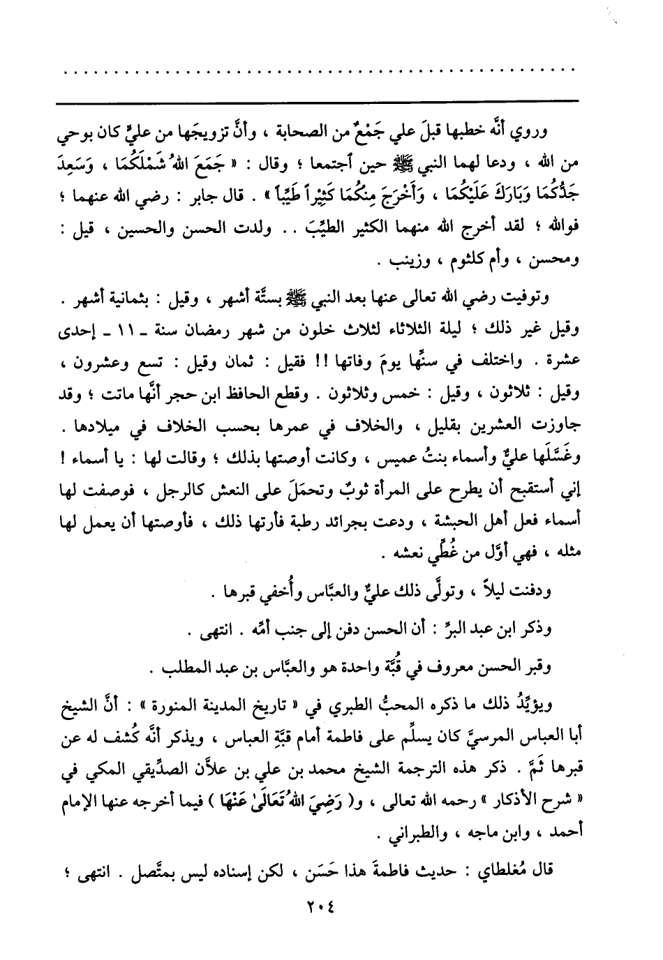 قال مغلطاي: حديث فاطمة هذا حسن، لكن إسناده ليس بمتّصل. انتهى؛