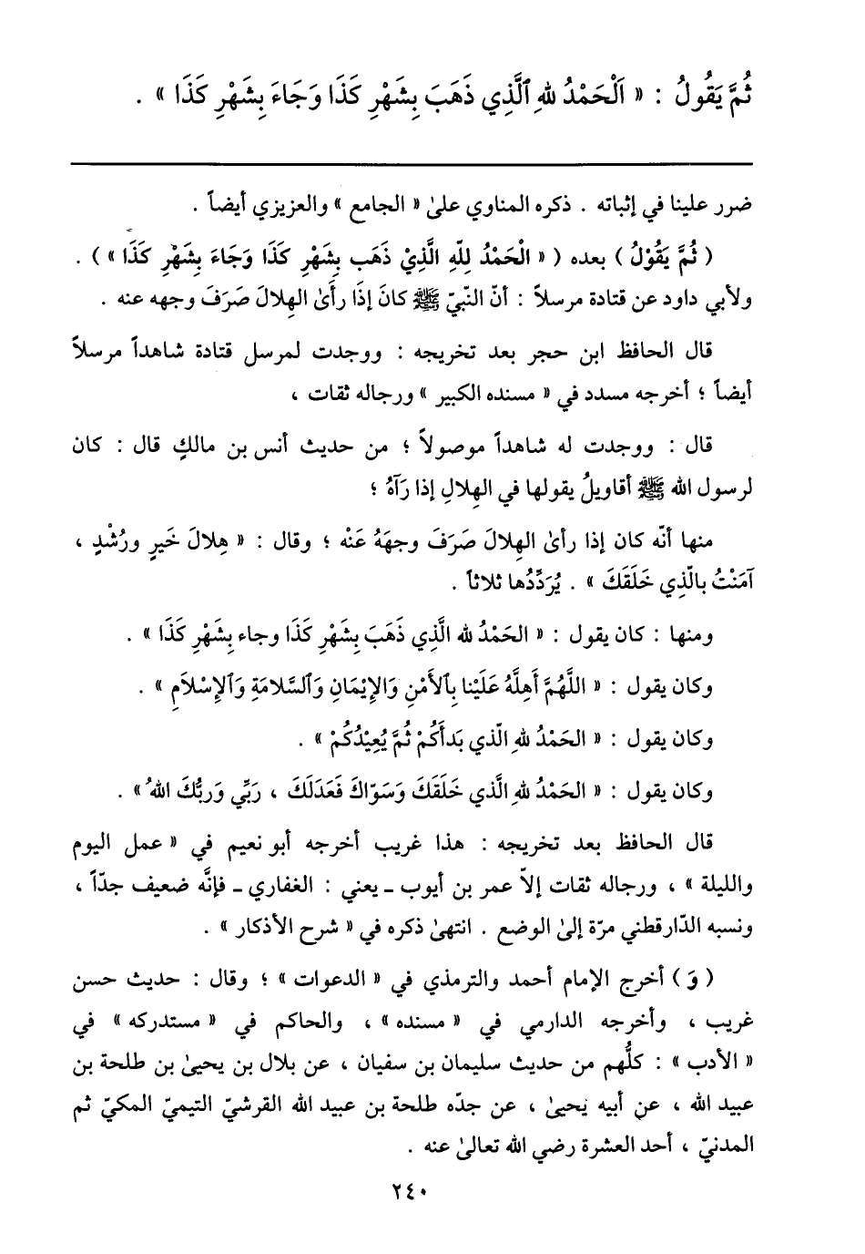 قال: ووجدت له شاهدا موصولا؛ من حديث أنس بن مالك قال: كان لرسول الله صلى الله عليه وسلّم أقاويل يقولها في الهلال إذا رآه؛