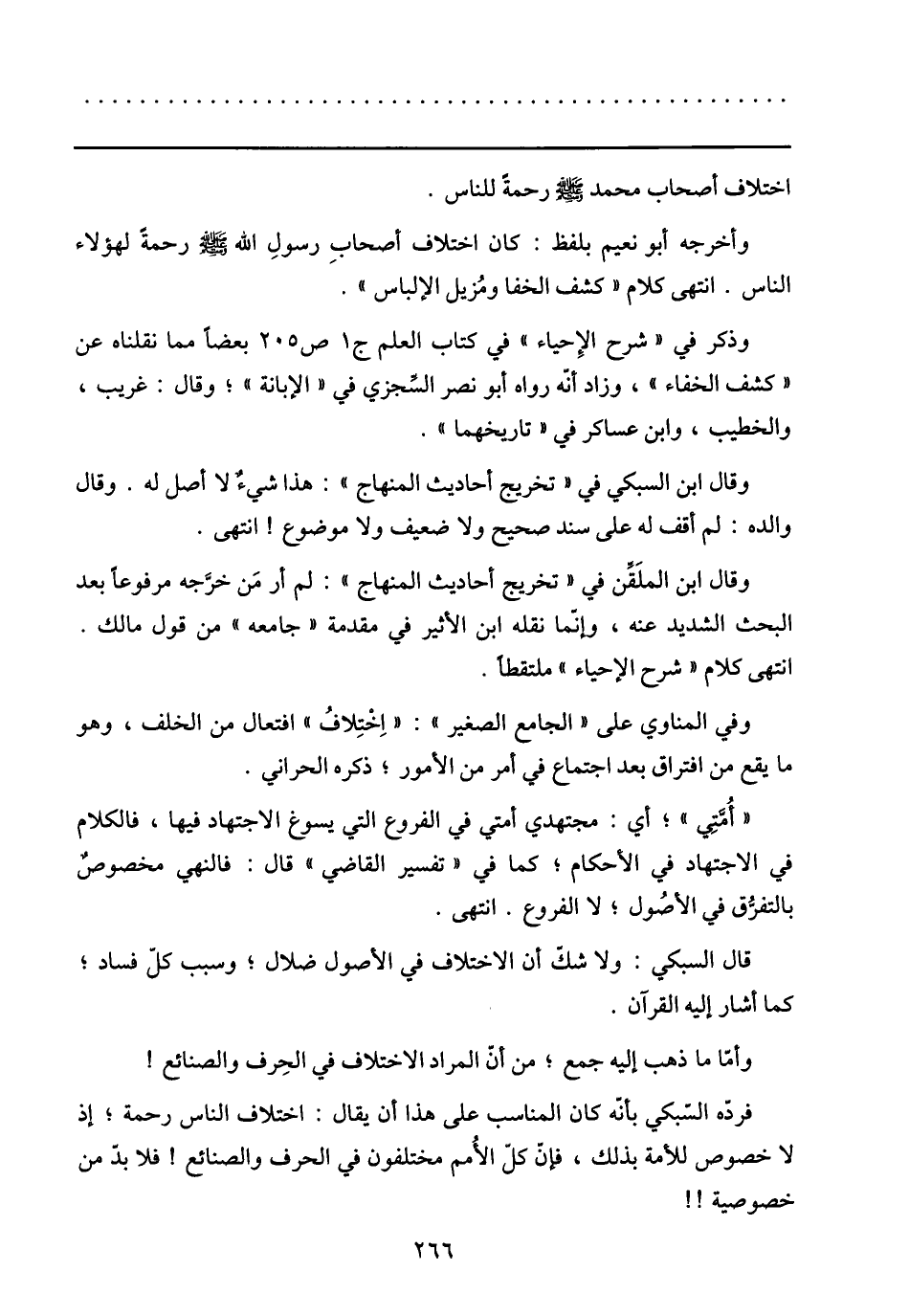 فردّه السّبكي بأنّه كان المناسب على هذا أن يقال: اختلاف الناس رحمة؛ إذ لا خصوص للأمة بذلك، فإنّ كلّ الأمم مختلفون في الحرف والصنائع! فلا بدّ من خصوصية!!