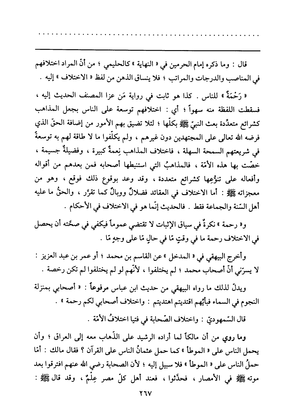 ويدلّ لذلك ما رواه البيهقي من حديث ابن عباس مرفوعا: «أصحابي بمنزلة النجوم في السماء فبأيّهم اقتديتم اهتديتم: واختلاف أصحابي لكم رحمة» .