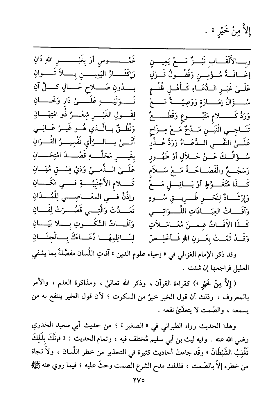 كذا الآفات ضمن معاملات ... وآفات السّكوت بلا بيان