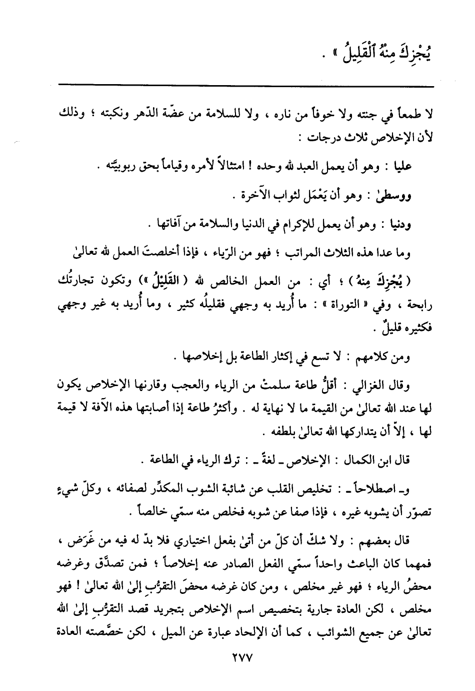 يجزك منه القليل» .