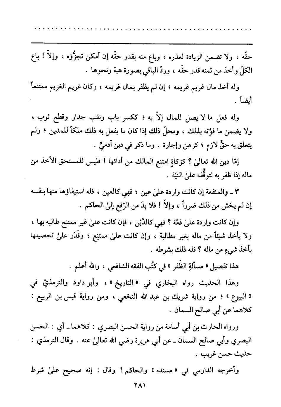وإن كانت واردة على ذمّة؟ فهي كالدّين، فإن كانت على غير ممتنع طالبه بها، ولا يأخذ شيئا من ماله بغير مطالبة، وإن كانت على ممتنع؛ وقدر على تحصيلها بأخذ شيء من ماله؟ فله ذلك بشرطه.