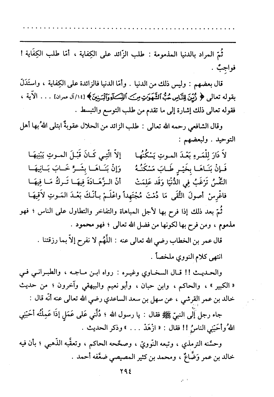 ثمّ المراد بالدنيا المذمومة: طلب الزّائد على الكفاية، أمّا طلب الكفاية! فواجب.