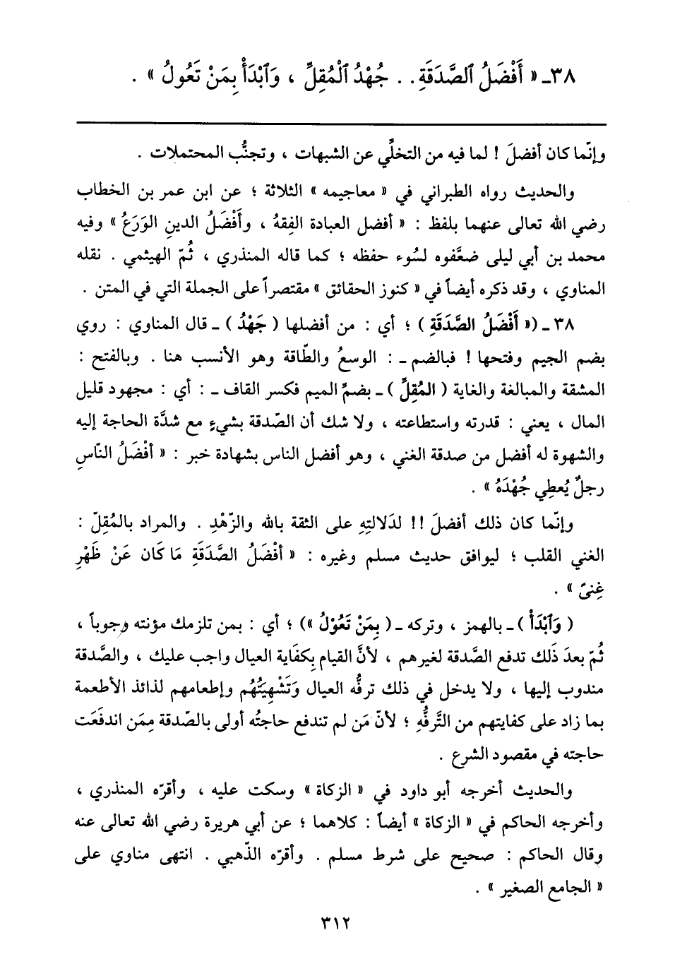 38- «أفضل الصّدقة.. جهد المقلّ، وابدأ بمن تعول» .