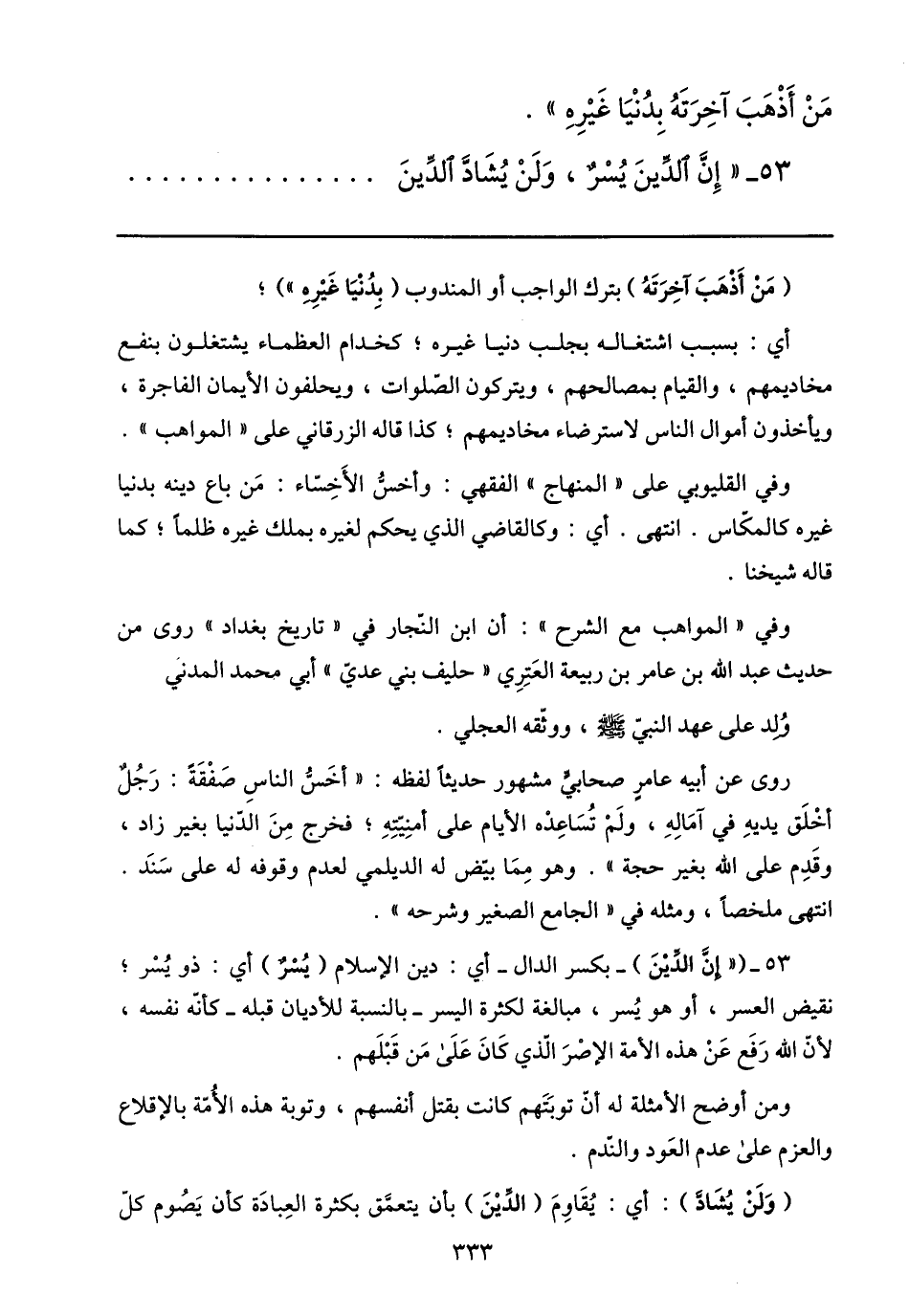 53- «إنّ الدّين يسر، ولن يشادّ الدّين ...