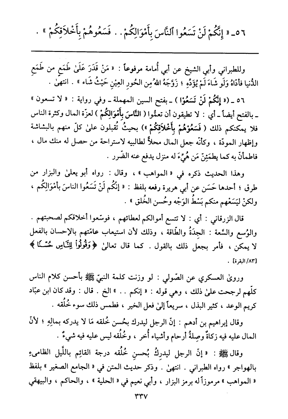 56- «إنّكم لن تسعوا النّاس بأموالكم.. فسعوهم بأخلاقكم» .