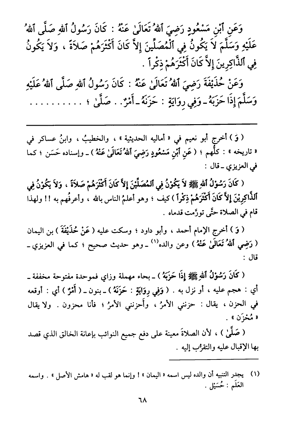 وعن حذيفة رضي الله تعالى عنه: كان رسول الله صلّى الله عليه وسلّم إذا حزبه- وفي رواية: حزنه- أمر.. صلّى؛ ...