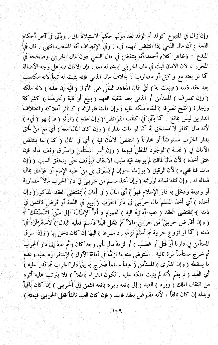 وَفِي الْإِنْصَافِ أَنَّهُ الْمَذْهَبُ انْتَهَى قَالَ فِي الْمُبْدِعِ: وَظَاهِرُ كَلَامِ أَحْمَدَ أَنَّهُ يُنْتَقَضُ فِي مَالِ الذِّمِّيِّ دُونَ مَالِ الْحَرْبِيِّ وَصَحَّحَهُ فِي الْمُحَرَّرِ؛ لِأَنَّ الْأَمَانَ ثَبَتَ فِي مَالِ الْحَرْبِيِّ بِدُخُولِهِ مَعَهُ فَإِنَّ الْأَمَانَ فِيهِ عَلَى وَجْهِ الْأَصَالَةِ كَمَا لَوْ بَعْثَهُ مَعَ وَكِيلٍ أَوْ مُضَارِبٍ، بِخِلَافِ مَالِ الذِّمِّيِّ فَإِنَّهُ يَثْبُتُ لَهُ تَبَعًا؛ لِأَنَّهُ مُكْتَسَبٌ بَعْدَ عَقْدِ ذِمَّتِهِ (فَيَبْعَثُ بِهِ) أَيْ: بِمَالِ الْمُعَاهِدِ الذِّمِّيِّ عَلَى الْأَوَّلِ (إلَيْهِ إنْ طَلَبَهُ) ؛ لِأَنَّهُ مَلَكَهُ.