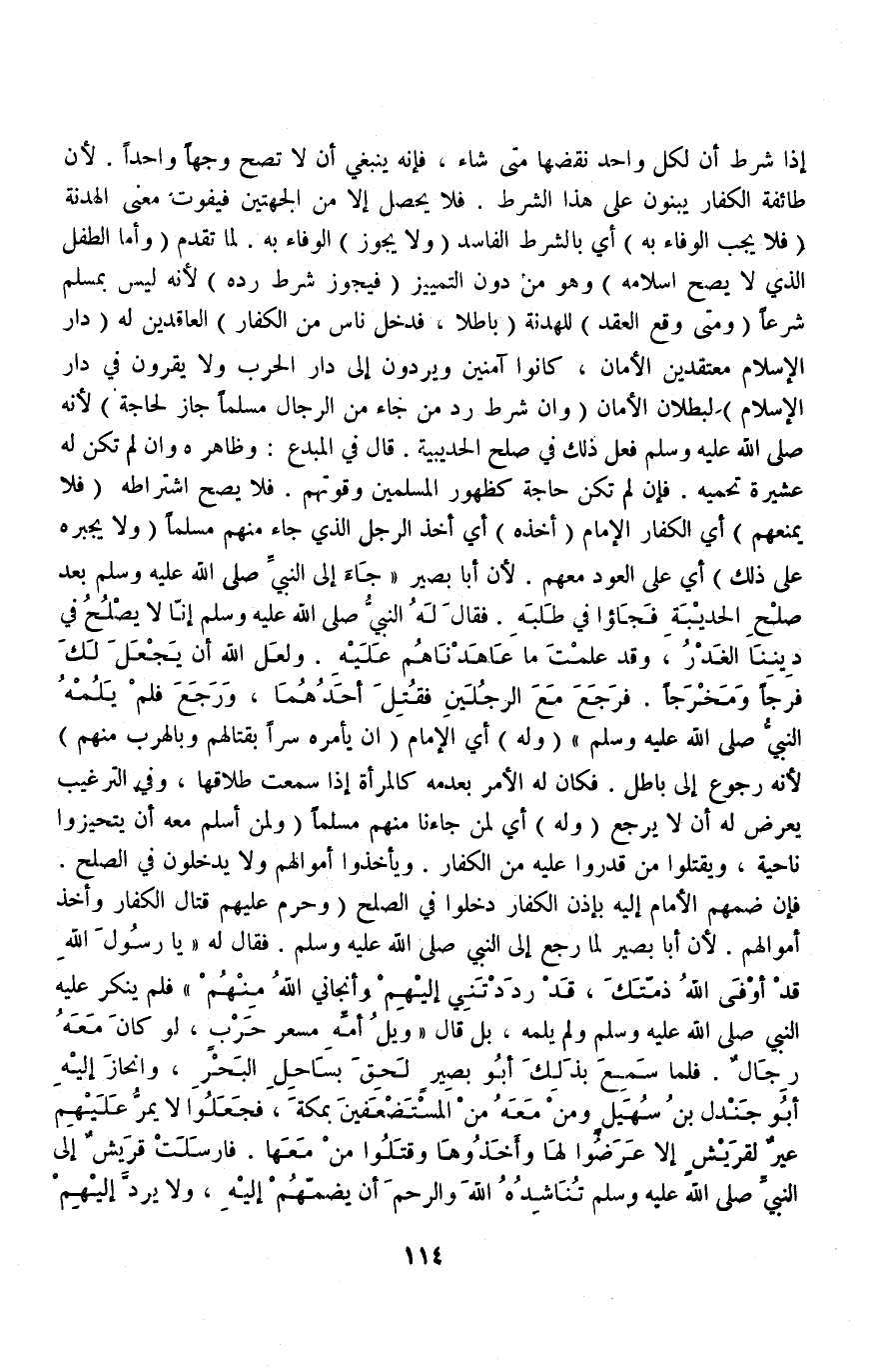 (وَإِنْ شَرَطَ رَدَّ مَنْ جَاءَ مِنْ الرِّجَالِ مُسْلِمًا جَازَ لِحَاجَةٍ) ؛ لِأَنَّهُ - صَلَّى اللَّهُ عَلَيْهِ وَسَلَّمَ - فَعَلَ ذَلِكَ فِي صُلْحِ الْحُدَيْبِيَةِ قَالَ فِي الْمُبْدِعِ: وَظَاهِرُهُ وَإِنْ لَمْ تَكُنْ لَهُ عَشِيرَةٌ تَحْمِيهِ فَإِنْ لَمْ تَكُنْ حَاجَةٌ كَظُهُورِ الْمُسْلِمِينَ وَقُوَّتِهِمْ فَلَا يَصِحُّ اشْتِرَاطُهُ (فَلَا يَمْنَعُهُمْ) أَيْ: الْكُفَّارَ الْإِمَامُ (أَخْذَهُ) أَيْ: أَخْذَ الرَّجُلِ الَّذِي جَاءَ مِنْهُمْ مُسْلِمًا.