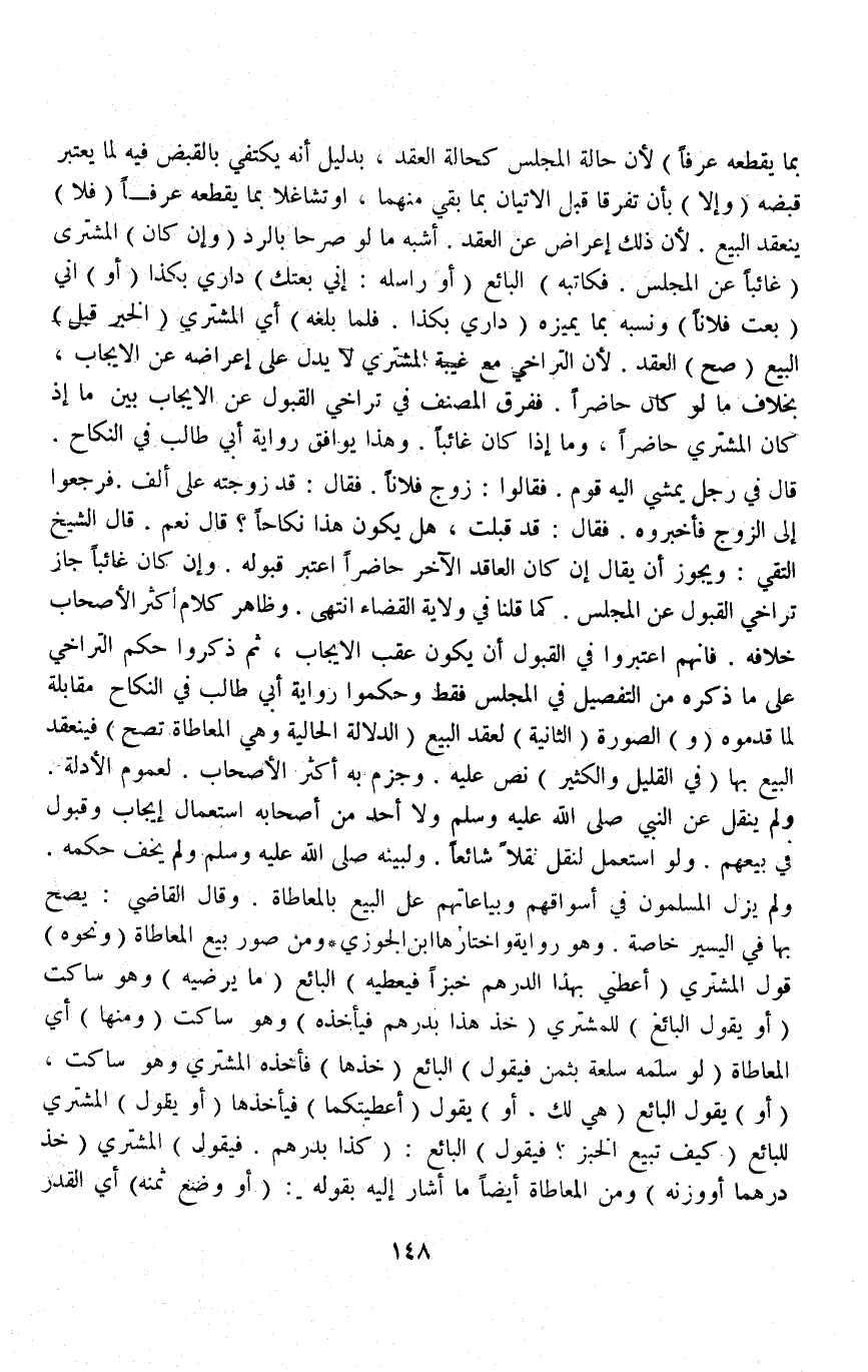 قَالَ الشَّيْخُ التَّقِيُّ: وَيَجُوزُ أَنْ يُقَالَ إنْ كَانَ الْعَاقِدُ الْآخَرُ حَاضِرًا اُعْتُبِرَ قَبُولُهُ، وَإِنْ كَانَ غَائِبًا جَازَ تَرَاخِي الْقَبُولِ عَنْ الْمَجْلِسِ كَمَا قُلْنَا فِي وِلَايَةِ الْقَضَاءِ انْتَهَى وَظَاهِرُ كَلَامِ أَكْثَرِ الْأَصْحَابِ خِلَافُهُ فَإِنَّهُمْ اعْتَبَرُوا فِي الْقَبُولِ أَنْ يَكُونَ عَقِبَ الْإِيجَابِ، ثُمَّ ذَكَرُوا حُكْمَ التَّرَاخِي عَلَى مَا ذَكَرَهُ مِنْ التَّفْصِيلِ فِي الْمَجْلِسِ فَقَطْ وَحَكَّمُوا رِوَايَةَ أَبِي طَالِبٍ فِي النِّكَاحِ مُقَابِلَةً لِمَا قَدَّمُوهُ.