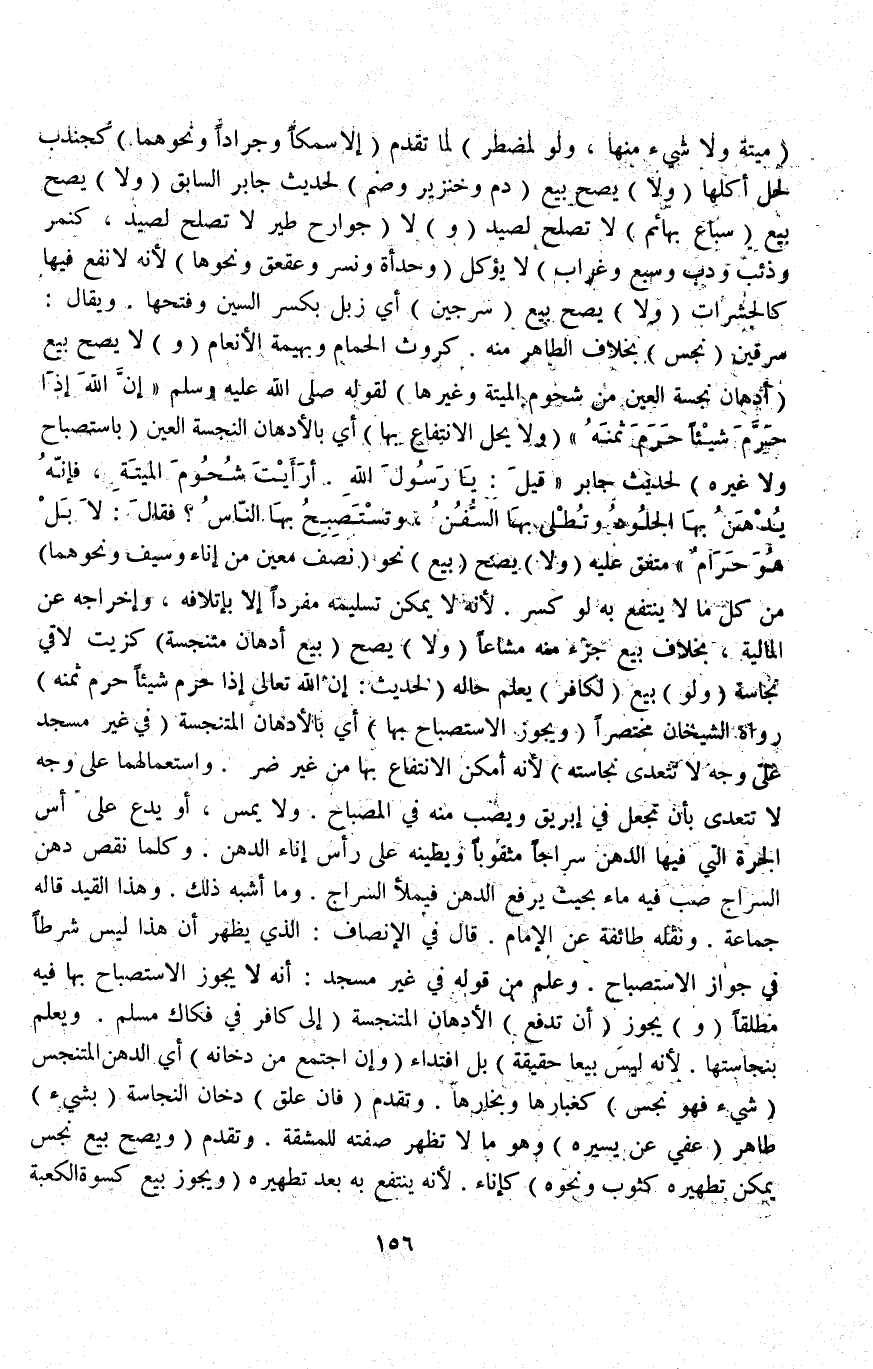 (وَلَوْ) بِيعَ (لِكَافِرٍ) يُعْلَمُ حَالُهُ (لِحَدِيثِ «إنَّ اللَّهَ تَعَالَى إذَا حَرَّمَ شَيْئًا حَرَّمَ ثَمَنَهُ» ) رَوَاهُ الشَّيْخَانِ مُخْتَصَرًا (وَيَجُوزُ الِاسْتِصْبَاحُ بِهَا) أَيْ: بِالْأَدْهَانِ الْمُتَنَجِّسَةِ (فِي غَيْرِ مَسْجِدٍ عَلَى وَجْهٍ لَا تَتَعَدَّى نَجَاسَتُهُ) ؛ لِأَنَّهُ أَمْكَنَ الِانْتِفَاعُ بِهَا مِنْ غَيْرِ ضُرٍّ وَاسْتِعْمَالُهَا عَلَى وَجْهٍ لَا تَتَعَدَّى بِأَنْ تُجْعَلَ فِي إبْرِيقٍ وَيُصَبُّ مِنْهُ فِي الْمِصْبَاحِ وَلَا يُمَسَّ، أَوْ يُدْعَ عَلَى أُسِّ الْجَرَّةِ الَّتِي فِيهَا الدُّهْنُ سِرَاجًا مَثْقُوبًا وَيُطَيِّنُهُ عَلَى رَأْسِ إنَاءِ الدُّهْنِ وَكُلَّمَا نَقَصَ دُهْنُ السِّرَاجِ صُبَّ فِيهِ مَاءٌ بِحَيْثُ يَرْفَعُ الدُّهْنَ فَيَمْلَأُ السِّرَاجَ وَمَا أَشْبَهَ ذَلِكَ.