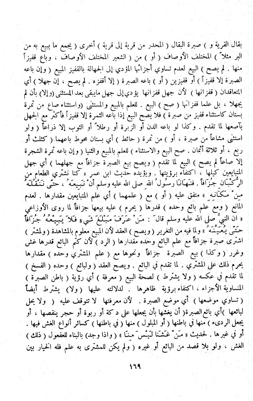بَقَّالِ الْقَرْيَةِ وَ) صُبْرَةِ الْبَقَّالِ (الْمُحَدَّرِ مِنْ قَرْيَةٍ إلَى قَرْيَةٍ) أُخْرَى (يَجْمَعُ مَا يَبِيعُ بِهِ مِنْ الْبُرِّ مَثَلًا) الْمُخْتَلِفِ الْأَوْصَافِ (أَوْ) مِنْ (الشَّعِيرِ الْمُخْتَلِفِ الْأَوْصَافِ، وَبَاعَ قَفِيزًا مِنْهَا لَمْ يَصِحَّ) الْبَيْعُ لِعَدَمِ تَسَاوِي أَجْزَائِهَا الْمُؤَدِّي إلَى الْجَهَالَةِ بِالْقَفِيزِ الْمَبِيعِ.