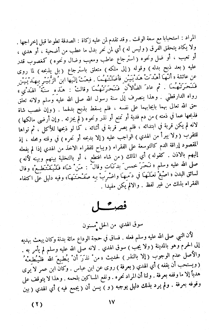 [فَصْلٌ سَوْقُ الْهَدْيِ مِنْ الْحِلِّ مَسْنُونٌ]