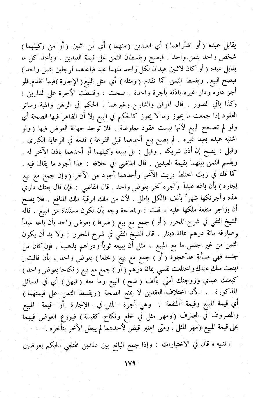 " تَنْبِيهٌ " قَالَ فِي الِاخْتِيَارَاتِ: وَإِذَا جَمَعَ الْبَائِعُ بَيْنَ عَقْدَيْنِ مُخْتَلِفَيْ الْحُكْمِ بِعِوَضَيْنِ