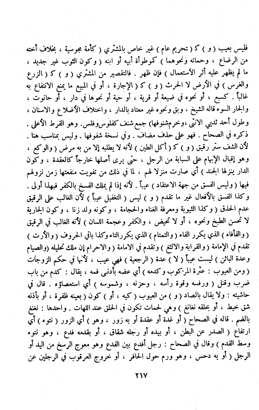 (وَ) مِنْ الْعُيُوبِ (كَيُّهُ، أَوْ) كَوْنُ (بِعَيْنِهِ ظَفَرَةً، أَوْ بِإِذْنِهِ شَقَّ خَيْطٍ، أَوْ بِحَلْقِهِ نَغَانِغَ) وَهِيَ لَحْمَاتٌ تَكُونُ فِي الْحَلْقِ عِنْدَ اللَّهَاتِ وَاحِدُهَا: نُغْنُغُ بِالضَّمِّ قَالَهُ فِي الصَّحَّاحِ (أَوْ غُدَّةٌ أَوْ عُقْدَةٌ أَوْ بِهِ زَوْرٌ وَهُوَ) أَيْ الزَّوْرُ (نُتُوءٌ) أَيْ ارْتِفَاعُ (الصَّدْرِ عَنْ الْبَطْنِ، أَوْ بِيَدِهِ أَوْ رِجْلِهِ شُقَاقٌ أَوْ بِقَدَمِهِ فَدَعٌ، وَهُوَ نُتُوءٌ وَسَطَ الْقَدَمِ) وَقَالَ فِي الصَّحَّاحِ: رَجُلٌ أَفَدَعُ بَيْنَ الْفَدَعِ وَهُوَ مُعْوَجُّ الرُّسْغِ مِنْ الْيَدِ أَوْ الرِّجْلِ (أَوْ بِهِ دَحْسٌ، وَهُوَ وَرَمٌ حَوْلَ الْحَافِرِ، أَوْ خُرُوجُ الْعُرْقُوبِ فِي الرِّجْلَيْنِ عَنْ