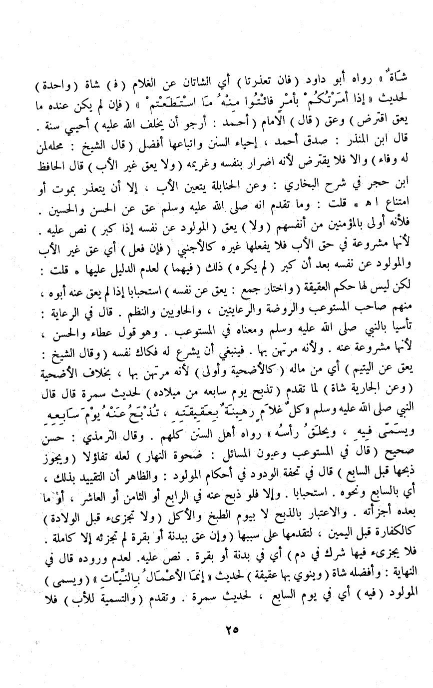 (قَالَ فِي الْمُسْتَوْعِبِ وَعُيُونِ الْمَسَائِلِ: ضَحْوَةُ النَّهَارِ) لَعَلَّهُ تَفَاؤُلًا (وَيَجُوزُ ذَبْحُهَا قَبْلَ السَّابِعِ) قَالَ فِي تُحْفَةِ الْوَدُودِ فِي أَحْكَامِ الْمَوْلُودِ: وَالظَّاهِرُ أَنَّ التَّقْيِيدَ بِذَلِكَ، أَيْ: بِالسَّابِعِ وَنَحْوِهِ اسْتِحْبَابًا وَإِلَّا فَلَوْ ذَبَحَ عَنْهُ فِي الرَّابِعِ أَوْ الثَّامِنِ أَوْ الْعَاشِرِ، أَوْ مَا بَعْدَهُ أَجْزَأَتْهُ وَالِاعْتِبَارُ بِالذَّبْحِ لَا بِيَوْمِ الطَّبْخِ وَالْأَكْلِ (وَلَا تُجْزِئُ قَبْلَ الْوِلَادَةِ) كَالْكَفَّارَةِ قَبْلَ الْيَمِينِ، لِتَقَدُّمِهَا عَلَى سَبَبِهَا.