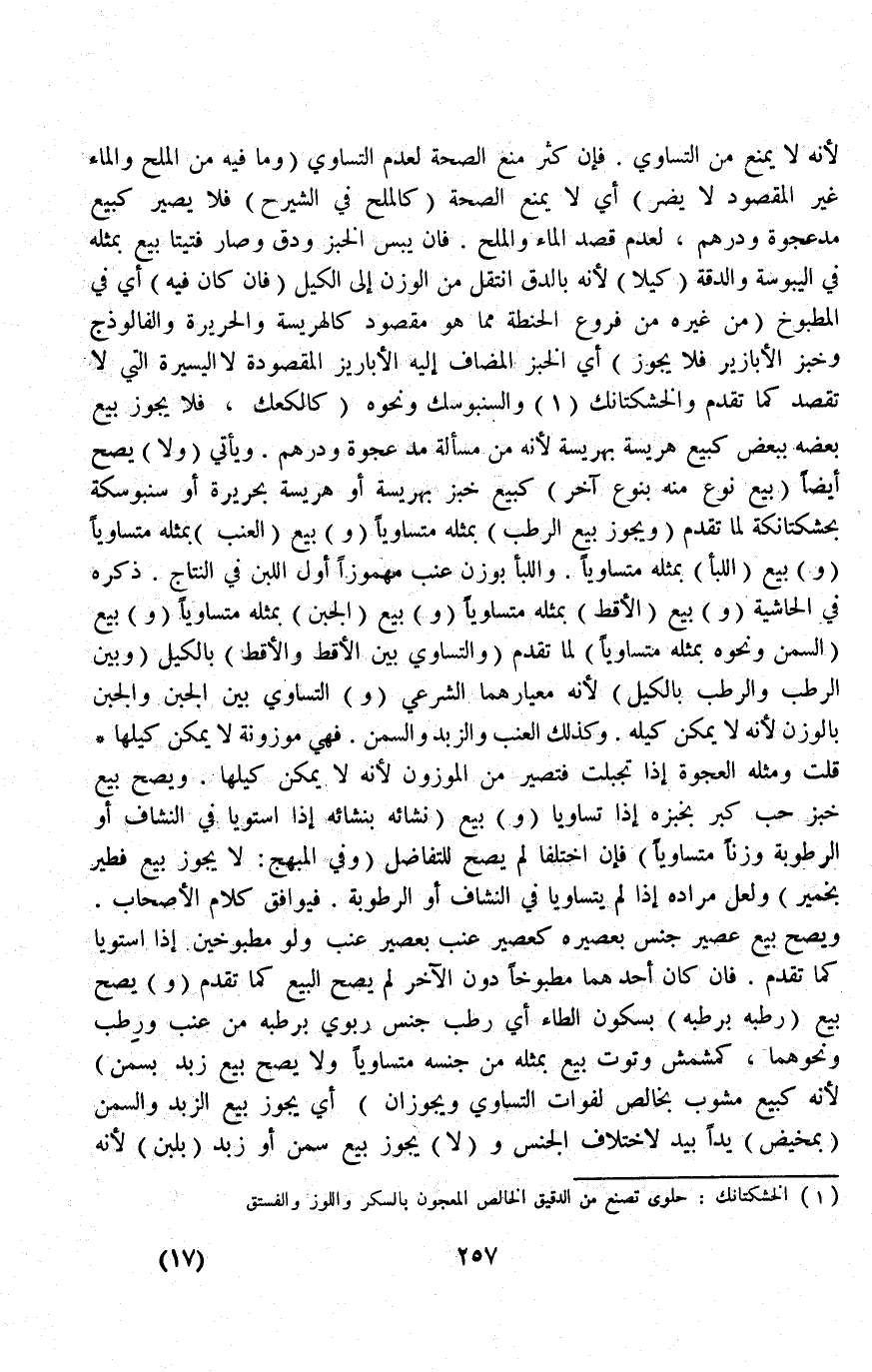 (فَإِنْ كَانَ فِيهِ) أَيْ فِي الْمَطْبُوخِ (مِنْ غَيْرِهِ مِنْ فُرُوعِ الْحِنْطَةِ مِمَّا هُوَ مَقْصُودٌ كَالْهَرِيسَةِ وَالْحَرِيرَةِ وَالْفَالُوذَجِ وَخُبْزِ الْأَبَازِيرِ فَلَا يَجُوزُ) أَيْ الْخُبْزُ الْمُضَافُ إلَيْهِ الْأَبَازِيرُ الْمَقْصُودَةُ لَا الْيَسِيرَةُ الَّتِي لَا تُقْصَدُ كَمَا تَقَدَّمَ وَالخشكتانك (١) وَالسَّنْبُوسَكُ وَنَحْوُهُ كَالْكَعْكِ، (فَلَا يَجُوزُ بَيْعُ بَعْضِهِ بِبَعْضٍ) كَبَيْعِ هَرِيسَةٍ بِهَرِيسَةٍ لِأَنَّهُ مِنْ مَسْأَلَةِ مُدِّ عَجْوَةٍ وَدِرْهَمٍ وَيَأْتِي (وَلَا) يَصِحُّ أَيْضًا بَيْعُ (نَوْعٍ مِنْهُ بِنَوْعٍ آخَرَ) كَبَيْعِ خُبْزٍ بِهَرِيسَةٍ أَوْ هَرِيسَةٍ بِحَرِيرَةٍ أَوْ سَنْبُوسَكَةٍ بخشكتانكة لِمَا تَقَدَّمَ.