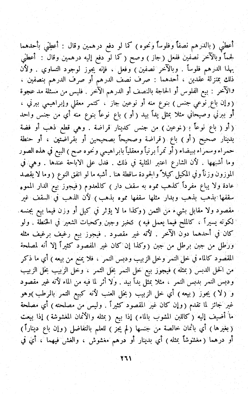(وَإِنْ بَاعَ نَوْعَيْ جِنْسٍ) بِنَوْعٍ مِنْهُ أَوْ نَوْعَيْنِ جَازَ، كَتَمْرٍ مَعْقِلِيٍّ وَإِبْرَاهِيمِيٍّ بِبَرْنِيِّ، أَوْ بِبَرْنِيِّ وَصَيْحَانِيٍّ مِثْلًا بِمِثْلٍ يَدًا بِيَدٍ (أَوْ) بَاعَ (نَوْعًا بِنَوْعٍ مِنْهُ) أَيْ مِنْ جِنْسٍ وَاحِدٍ (أَوْ) بَاعَ نَوْعًا بِ (نَوْعَيْنِ) مِنْ جِنْسٍ (كَدِينَارِ قُرَاضَةٍ وَهِيَ قِطَعُ ذَهَبٍ أَوْ فِضَّةٍ) بِدِينَارٍ (صَحِيحٍ أَوْ) بَاعَ (قُرَاضَةً وَصَحِيحًا بِصَحِيحَيْنِ أَوْ بِقُرَاضَتَيْنِ، أَوْ حِنْطَةً حَمْرَاءَ وَسَمْرَاءَ بِبَيْضَاءَ أَوْ تَمْرًا بَرْنِيًّا وَمَعْقِلِيًّا بِإِبْرَاهِيمِيٍّ وَنَحْوِهِ صَحَّ) الْبَيْعُ فِي هَذِهِ الصُّوَرِ وَمَا أَشْبَهَهَا، لِأَنَّ الشَّارِعَ اعْتَبَرَ الْمِثْلِيَّةَ فِي ذَلِكَ فَدَلَّ عَلَى الْإِبَاحَةِ عِنْدَهَا وَهِيَ فِي الْمَوْزُونِ وَزْنًا وَفِي الْمَكِيلِ كَيْلًا وَالْجَوْدَةُ سَاقِطَةٌ هُنَا أَشْبَهَ مَا لَوْ اتَّفَقَ النَّوْعُ.