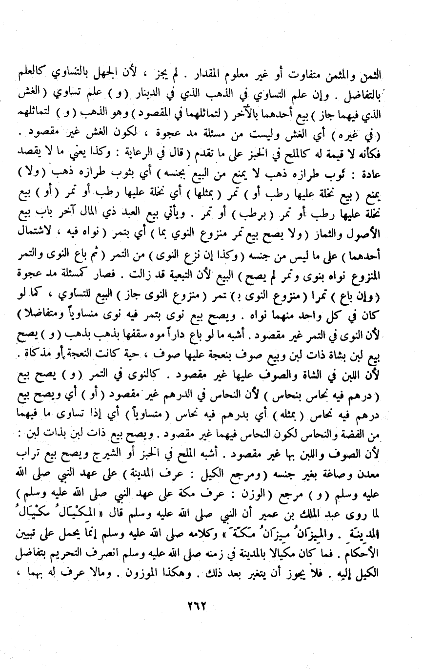 الثَّمَنِ وَالْمُثَمَّنِ، مُتَفَاوِتٌ أَوْ غَيْرُ مَعْلُومِ الْمِقْدَارِ، لَمْ يَجُزْ، لِأَنَّ الْجَهْلَ بِالتَّسَاوِي كَالْعِلْمِ بِالتَّفَاضُلِ وَإِنَّ عُلِمَ التَّسَاوِي فِي الذَّهَبِ الَّذِي فِي الدِّينَارِ.