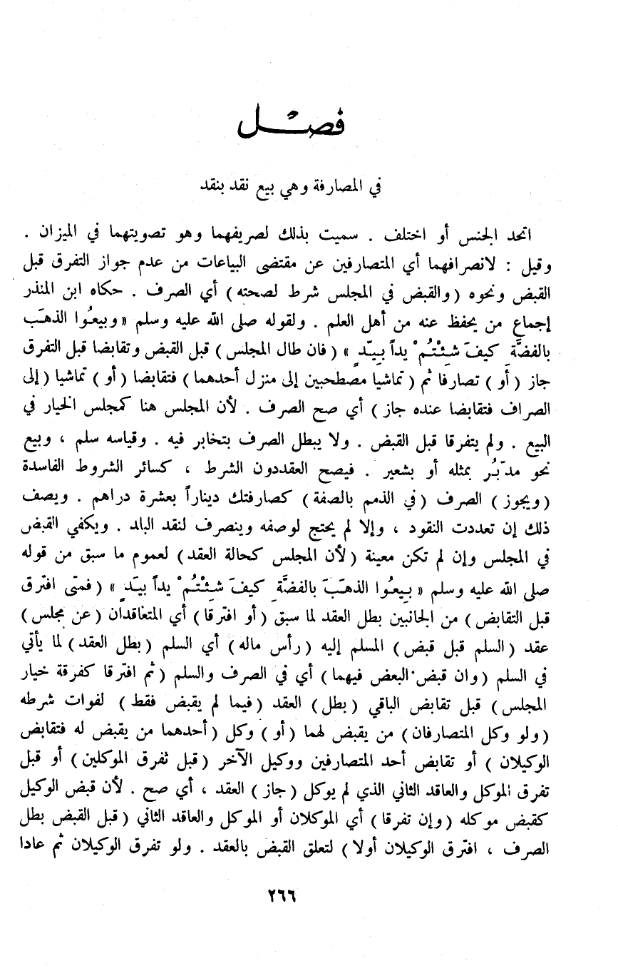 [فَصْلٌ فِي الْمُصَارَفَةِ وَهِيَ بَيْعُ نَقْدٍ بِنَقْدٍ]