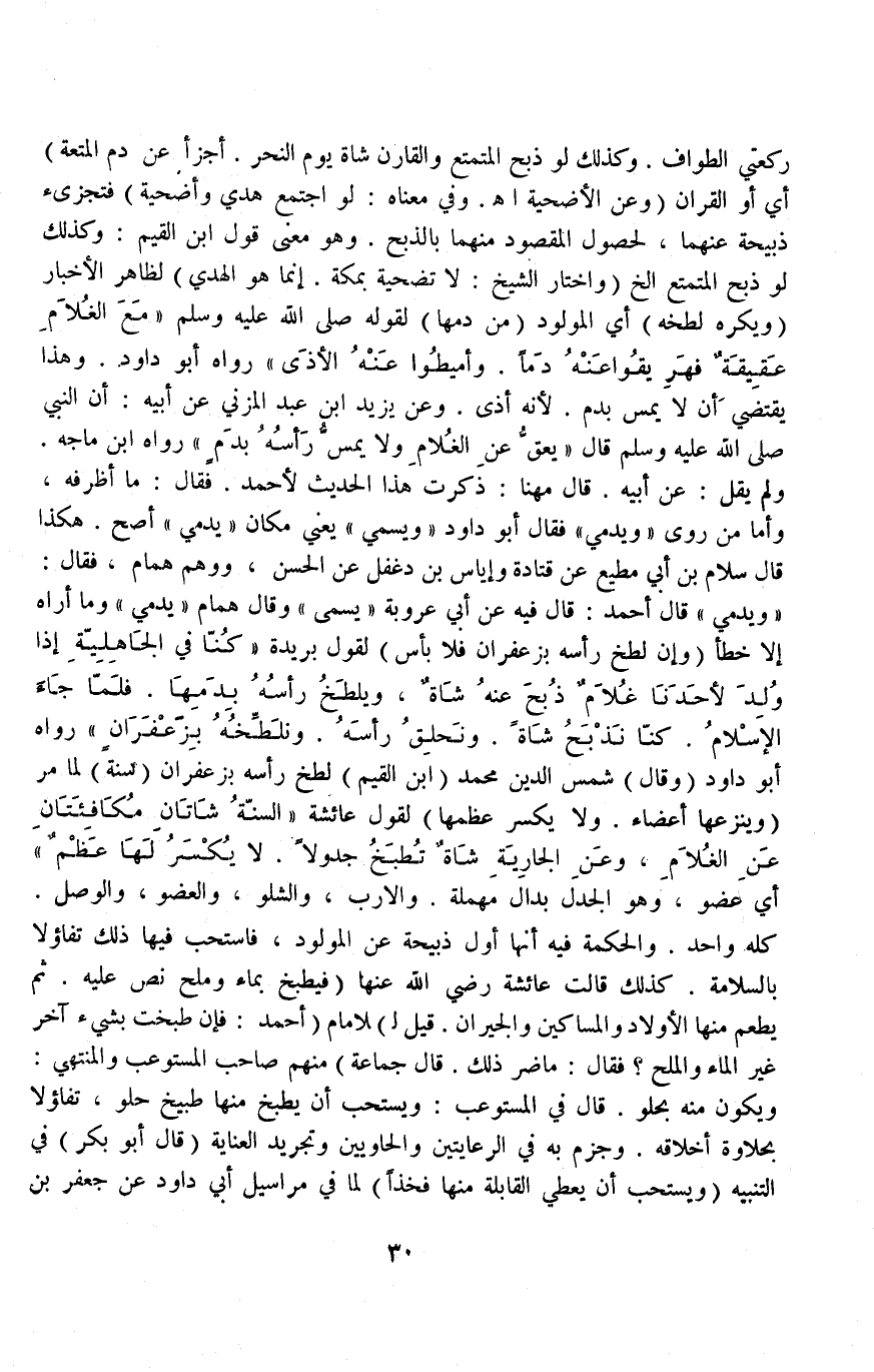 (مَرَّ وَيَنْزِعُهَا أَعْضَاءً وَلَا يَكْسِرُ عَظْمُهَا) لِقَوْلِ عَائِشَةَ «السُّنَّةُ شَاتَانِ مُكَافِئَتَانِ عَنْ الْغُلَامِ، وَعَنْ الْجَارِيَةِ شَاةٌ تُطْبَخُ جُدُولًا لَا يُكْسَرُ لَهَا عَظْمٌ» أَيْ: عُضْوٌ وَهُوَ الْجَدْلُ بِدَالٍ مُهْمَلَةٍ وَالْإِرْبُ، وَالشِّلْوُ، وَالْعُضْوُ، وَالْوَصْلُ كُلُّهُ وَاحِدٌ وَالْحِكْمَةُ فِيهِ أَنَّهَا أَوَّلُ ذَبِيحَةٍ عَنْ الْمَوْلُودِ، فَاسْتُحِبَّ فِيهَا ذَلِكَ تَفَاؤُلًا بِالسَّلَامَةِ كَذَلِكَ قَالَتْ عَائِشَةُ - رَضِيَ اللَّهُ عَنْهَا - (فَيُطْبَخُ بِمَاءٍ وَمِلْحٍ نَصَّ عَلَيْهِ ثُمَّ يُطْعِمُ مِنْهَا الْأَوْلَادَ وَالْمَسَاكِينَ وَالْجِيرَانَ قِيلَ) لِلْإِمَامِ (أَحْمَدَ فَإِنْ طُبِخَتْ بِشَيْءٍ آخَرَ غَيْرِ الْمَاءِ وَالْمِلْحِ؟ فَقَالَ: مَا ضَرَّ ذَلِكَ قَالَ جَمَاعَةٌ) مِنْهُمْ صَاحِبُ الْمُسْتَوْعِبِ وَالْمُنْتَهَى: (وَيَكُونُ مِنْهُ بِحُلْوٍ) قَالَ فِي الْمُسْتَوْعِبِ: وَيُسْتَحَبُّ أَنْ يُطْبَخَ مِنْهَا طَبِيخٌ حُلْوٌ، تَفَاؤُلًا بِحَلَاوَةِ أَخْلَاقِهِ وَجَزَمَ بِهِ فِي الرِّعَايَتَيْنِ وَالْحَاوِيَيْنِ وَتَجْرِيدِ الْعِنَايَةِ (قَالَ أَبُو بَكْرٍ) فِي التَّنْبِيهِ.