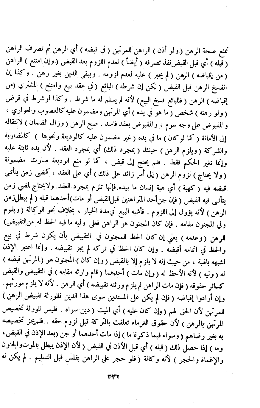 (وَيَقُومُ وَلِي الْمَجْنُونِ مَقَامَهُ فَإِنْ كَانَ الْمَجْنُونُ هُوَ الرَّاهِنُ فَعَلَى وَلِيِّهِ مَا فِيهِ الْحَظُّ لَهُ مِنْ التَّقْبِيضِ) لِلرَّهْنِ (وَعَدَمِهِ) يَعْنِي إنْ كَانَ الْحَظُّ لِلْمَجْنُونِ فِي التَّقْبِيضِ بِأَنْ يَكُونَ شَرْطٌ فِي بَيْعٍ وَالْحَظُّ فِي إتْمَامِهِ أَقْبَضَهُ وَإِنْ كَانَ الْحَظُّ فِي تَرْكِهِ لَمْ يَجُزْ تَقْبِيضُهُ وَإِنَّمَا اُعْتُبِرَ الْإِذْنُ لِشَبَهِهِ بِالْهِبَةِ، مِنْ حَيْثُ إنَّهُ لَا يَلْزَمُ إلَّا بِالْقَبْضِ.
