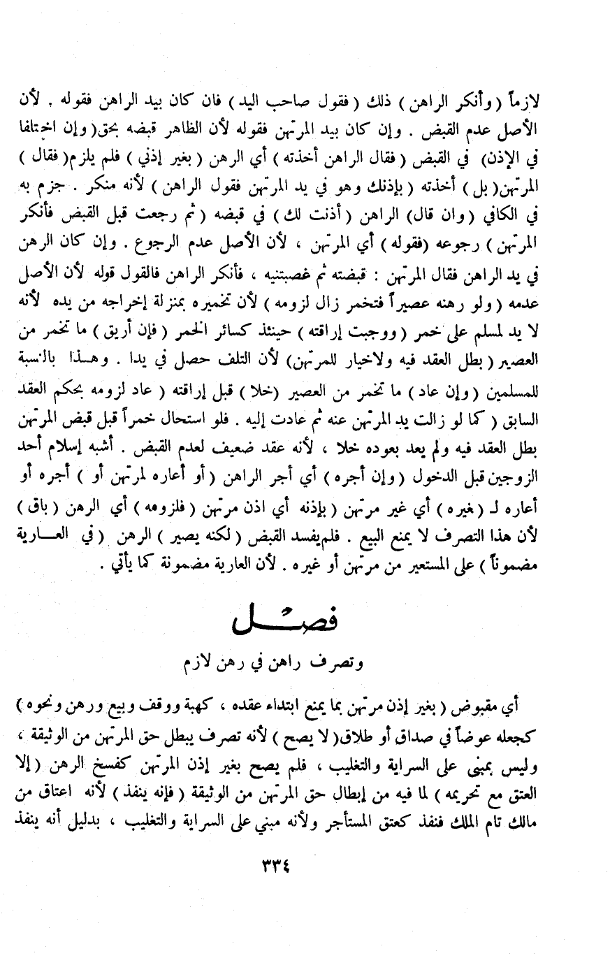 فَصْلٌ (وَتَصَرُّفُ رَاهِنٍ فِي رَهْنٍ لَازِمٍ) أَيْ: مَقْبُوضٍ (بِغَيْرِ إذْنِ مُرْتَهِنٍ بِمَا يَمْنَعُ ابْتِدَاءَ عَقْدِهِ، كَهِبَةٍ وَوَقْفٍ وَبَيْعٍ وَرَهْنٍ وَنَحْوِهِ) كَجَعْلِهِ عِوَضًا فِي صَدَاقٍ أَوْ طَلَاقٍ (لَا يَصِحُّ) ؛ لِأَنَّهُ تَصَرُّفٌ يُبْطِلُ حَقَّ الْمُرْتَهِنِ مِنْ الْوَثِيقَةِ، وَلَيْسَ بِمَبْنِيٍّ عَلَى السِّرَايَةِ وَالتَّغْلِيبِ، فَلَمْ يَصِحَّ بِغَيْرِ إذْنِ الْمُرْتَهِنِ كَفَسْخِ الرَّهْنِ (إلَّا الْعِتْقَ مَعَ تَحْرِيمِهِ) لِمَا فِيهِ مِنْ إبْطَالِ حَقِّ الْمُرْتَهِنِ مِنْ الْوَثِيقَةِ (فَإِنَّهُ يَنْفُذُ) ؛ لِأَنَّهُ إعْتَاقٌ مِنْ مَالِكٍ تَامِّ الْمِلْكِ فَنَفَذَ كَعِتْقِ الْمُسْتَأْجِرِ؛ وَلِأَنَّهُ مَبْنِيٌّ عَلَى السِّرَايَةِ وَالتَّغْلِيبِ بِدَلِيلِ أَنَّهُ يَنْفُذُ