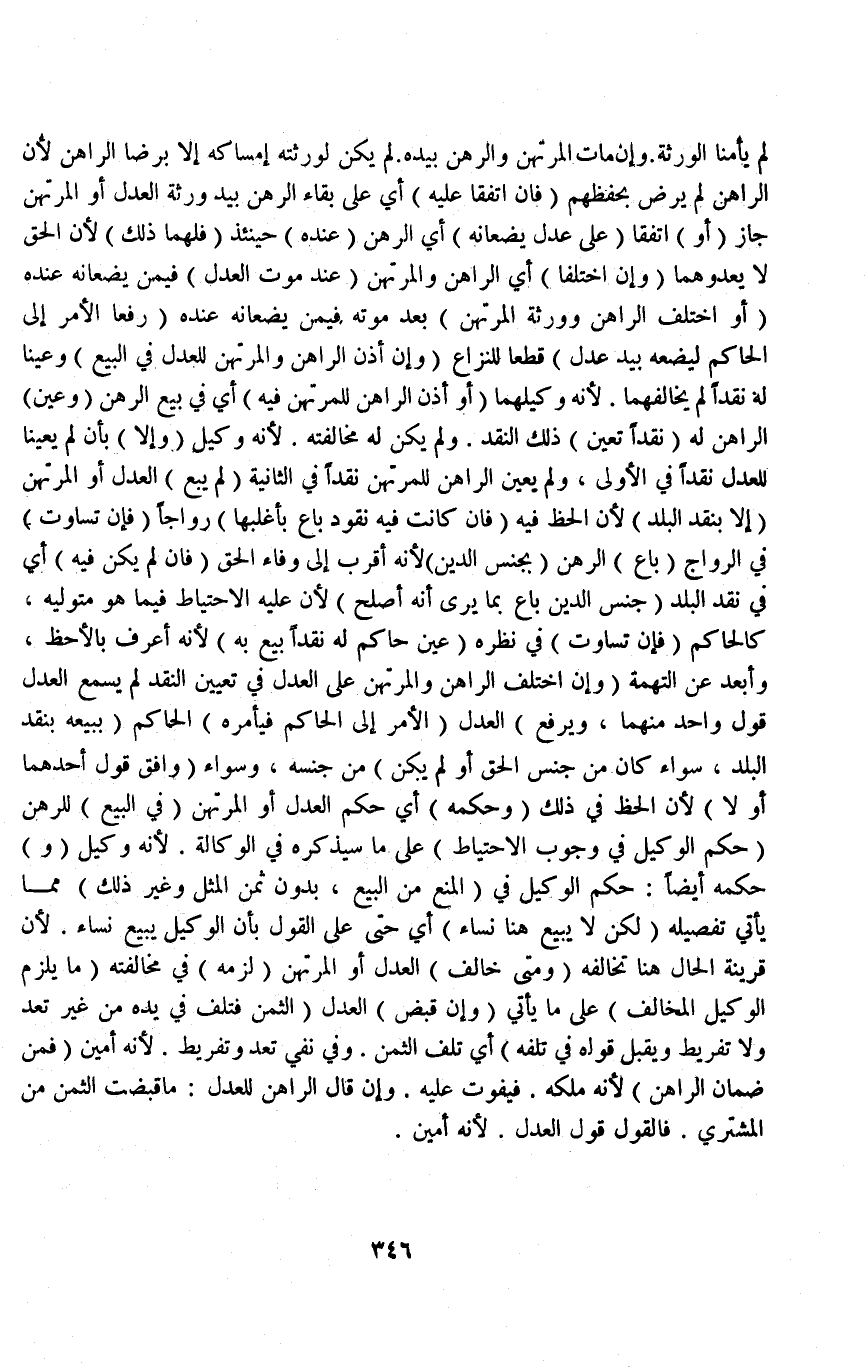 (وَ) حُكْمُهُ أَيْضًا: حُكْمُ الْوَكِيلِ فِي (الْمَنْعِ مِنْ الْبَيْعِ، بِدُونِ ثَمَنِ الْمِثْلِ وَغَيْرِ ذَلِكَ) مِمَّا يَأْتِي تَفْصِيلُهُ (لَكِنْ لَا يَبِيعُ هُنَا نَسَاءً) أَيْ: حَتَّى عَلَى الْقَوْلِ بِأَنَّ الْوَكِيلَ يَبِيعُ نَسَاءً؛ لِأَنَّ قَرِينَةَ الْحَالِ هُنَا تُخَالِفُهُ (وَمَتَى خَالَفَ) الْعَدْلُ أَوْ الْمُرْتَهِنُ (لَزِمَهُ) فِي مُخَالِفَتِهِ (مَا يَلْزَمُ الْوَكِيلُ الْمُخَالِفُ) عَلَى مَا يَأْتِي.