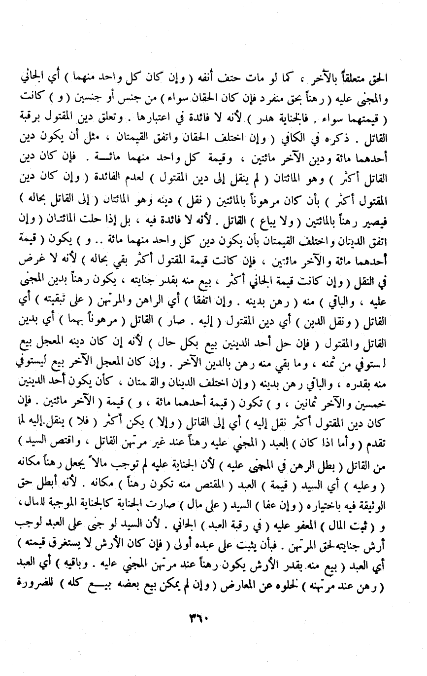(وَإِنْ كَانَتْ قِيمَةُ الْجَانِي أَكْثَرَ، بِيعَ مِنْهُ بِقَدْرِ جِنَايَتِهِ، يَكُونُ رَهْنًا بِدَيْنِ الْمَجْنِيِّ عَلَيْهِ، وَالْبَاقِي) مِنْهُ (رَهْنٌ بِدَيْنِهِ وَإِنْ اتَّفَقَا) أَيْ: الرَّاهِنُ وَالْمُرْتَهِنُ (عَلَى تَبْقِيَتِهِ) أَيْ: الْقَاتِلِ (وَنَقْلِ الدَّيْنِ) أَيْ: دَيْنِ الْمَقْتُولِ (إلَيْهِ صَارَ) الْقَاتِلُ (مَرْهُونًا بِهِمَا) أَيْ: بِدَيْنِ الْقَاتِلِ وَالْمَقْتُولِ (فَإِنْ حَلَّ أَحَدُ الدَّيْنَيْنِ بِيعَ بِكُلِّ حَالٍ) ؛ لِأَنَّهُ إنْ كَانَ دَيْنُهُ الْمُعَجَّلُ بِيعَ لِيُسْتَوْفَى مِنْ ثَمَنِهِ، وَمَا بَقِيَ مِنْهُ رُهِنَ بِالدَّيْنِ الْآخَرِ وَإِنْ كَانَ الْمُعَجَّلُ الْآخَرَ بِيعَ لِيُسْتَوْفَى مِنْهُ بِقَدْرِهِ، وَالْبَاقِي رُهِنَ بِدَيْنِهِ.