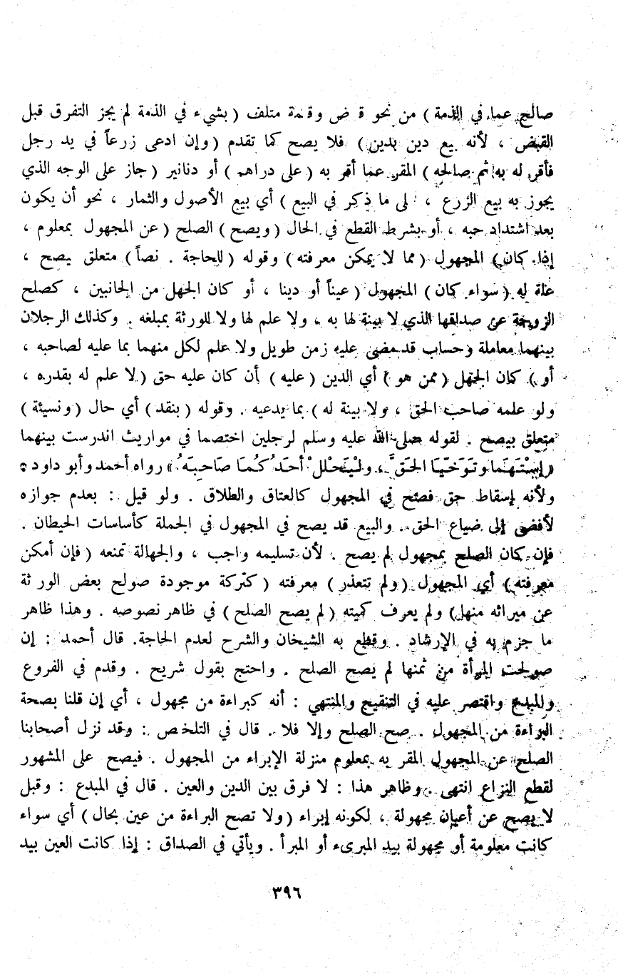 وَالْبَيْعُ قَدْ يَصِحُّ فِي الْمَجْهُولِ فِي الْجُمْلَةِ كَأَسَاسَاتِ الْحِيطَانِ فَإِنْ كَانَ الصُّلْحُ بِمَجْهُولٍ لَمْ يَصِحَّ؛ لِأَنَّ تَسْلِيمَهُ وَاجِبٌ، وَالْجَهَالَةُ تَمْنَعُهُ (فَإِنْ أَمْكَنَ مَعْرِفَتُهُ) أَيْ: الْمَجْهُولِ.