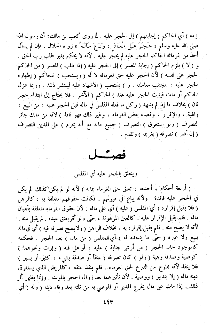 [فَصْلٌ يَتَعَلَّق بِالْحَجْرِ عَلَى الْمُفْلِسِ أَرْبَعَةُ أَحْكَامٍ]