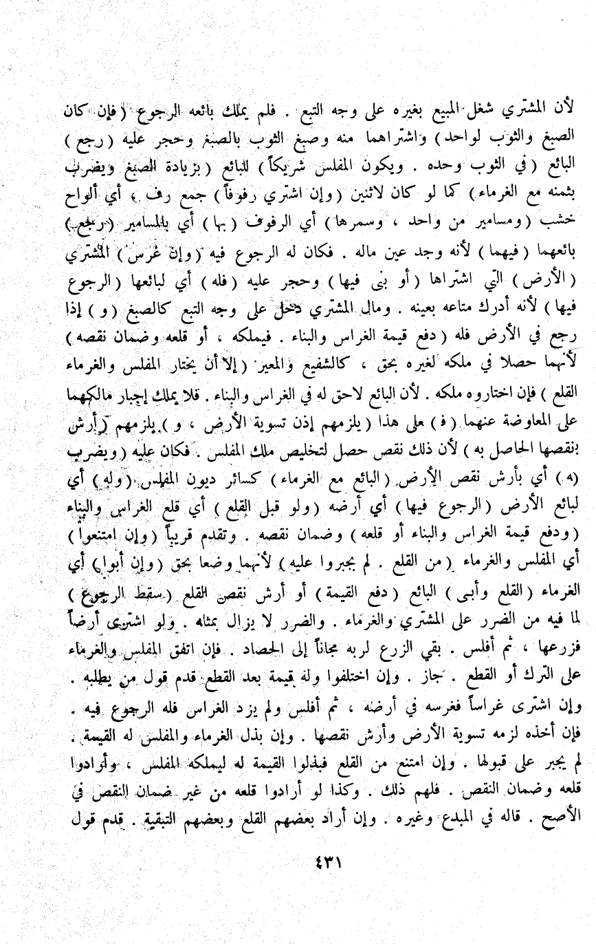 (وَ) عَلَى هَذَا (يَلْزَمُهُمْ إذَنْ تَسْوِيَةُ الْأَرْضِ وَ) يَلْزَمُهُمْ (أَرْشٌ بِنَقْصِهَا الْحَاصِلِ بِهِ) لِأَنَّ ذَلِكَ نَقْصٌ حَصَلَ لِتَخْلِيصِ مِلْكِ الْمُفْلِسِ فَكَانَ عَلَيْهِ (وَيَضْرِبُ بِهِ) أَيْ بِأَرْشِ نَقْصِ الْأَرْضِ (الْبَائِعُ مَعَ الْغُرَمَاءِ) كَسَائِرِ دُيُونِ الْمُفْلِسِ (وَلَهُ) أَيْ لِبَائِعِ الْأَرْضِ (الرُّجُوعُ فِيهَا) أَيْ أَرْضِهِ (وَلَوْ قَبْلَ الْقَلْعِ) أَيْ قَلْعِ الْغِرَاسِ وَالْبِنَاءِ (وَدَفْعُ قِيمَةِ الْغِرَاسِ وَالْبِنَاءِ أَوْ قَلْعُهُ) وَضَمَانُ نَقْصِهِ وَتَقَدَّمَ قَرِيبًا.