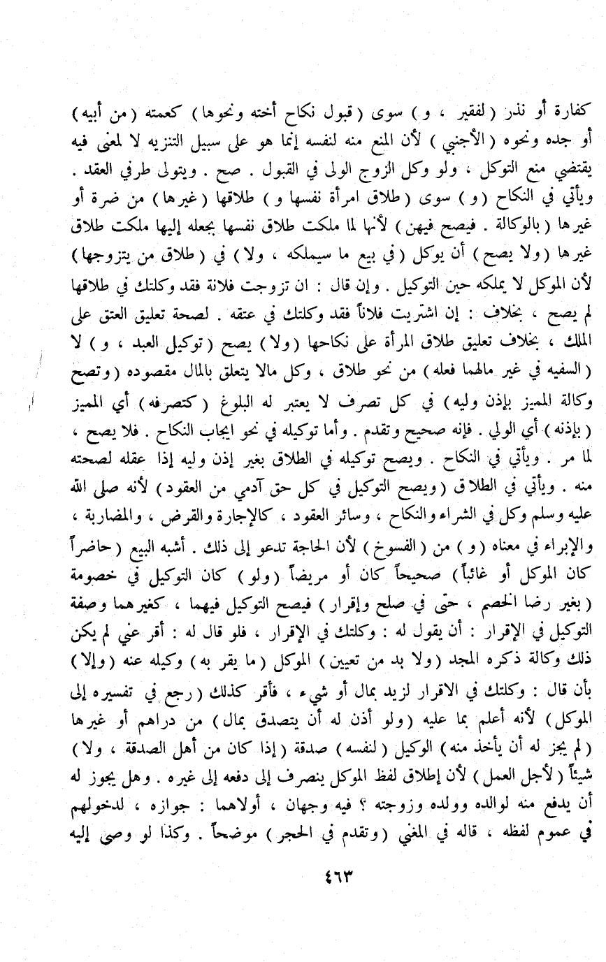 كَفَّارَةٍ أَوْ نَذْرٍ (لِفَقِيرٍ، وَ) سِوَى (قَبُولِ نِكَاحِ أُخْتِهِ وَنَحْوِهَا) كَعَمَّتِهِ (مِنْ أَبِيهِ) أَوْ جَدِّهِ وَنَحْوِهِ (الْأَجْنَبِيِّ) لِأَنَّ الْمَنْعَ مِنْهُ لِنَفْسِهِ إنَّمَا هُوَ عَلَى سَبِيلِ التَّنْزِيهِ لَا لِمَعْنًى فِيهِ يَقْتَضِي مَنْعَ التَّوَكُّلِ.