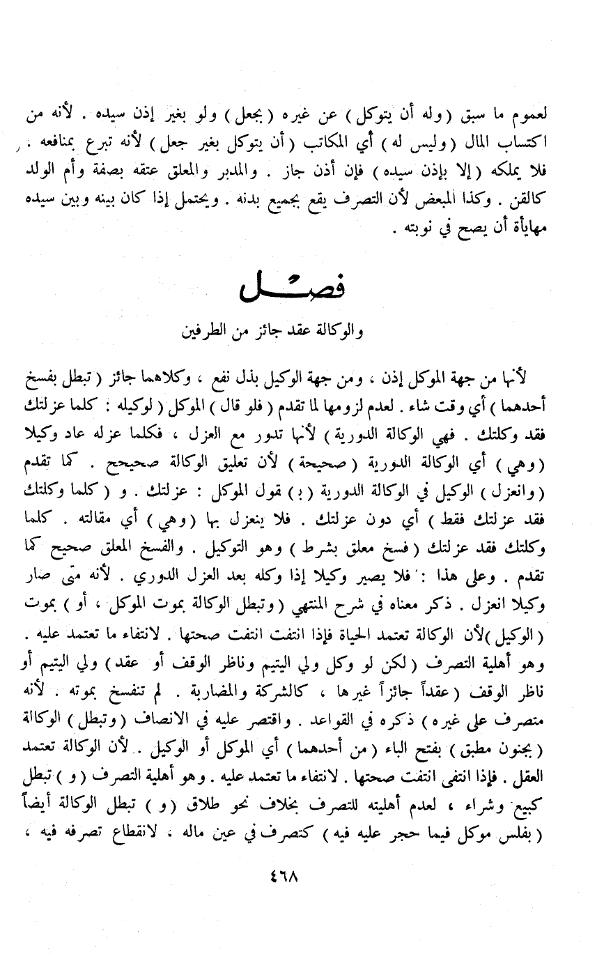 فَصْلٌ (وَالْوَكَالَةُ عَقْدٌ جَائِزٌ مِنْ الطَّرَفَيْنِ) لِأَنَّهَا مِنْ جِهَةِ الْمُوَكِّلِ إذْنٌ وَمِنْ جِهَةِ الْوَكِيلِ بَذْلُ نَفْعٍ، وَكِلَاهُمَا جَائِزٌ (تَبْطُلُ بِفَسْخِ أَحَدِهِمَا) أَيَّ وَقْتٍ شَاءَ لِعَدَمِ لُزُومِهَا لِمَا تَقَدَّمَ (فَلَوْ قَالَ) الْمُوَكِّلُ (لِوَكِيلِهِ: كُلَّمَا عَزَلْتُك فَقَدْ وَكَّلْتُك فَهِيَ الْوَكَالَةُ الدَّوْرِيَّةُ) لِأَنَّهَا تَدُورُ مَعَ الْعَزْلِ، فَكُلَّمَا عَزَلَهُ عَادَ وَكِيلًا.