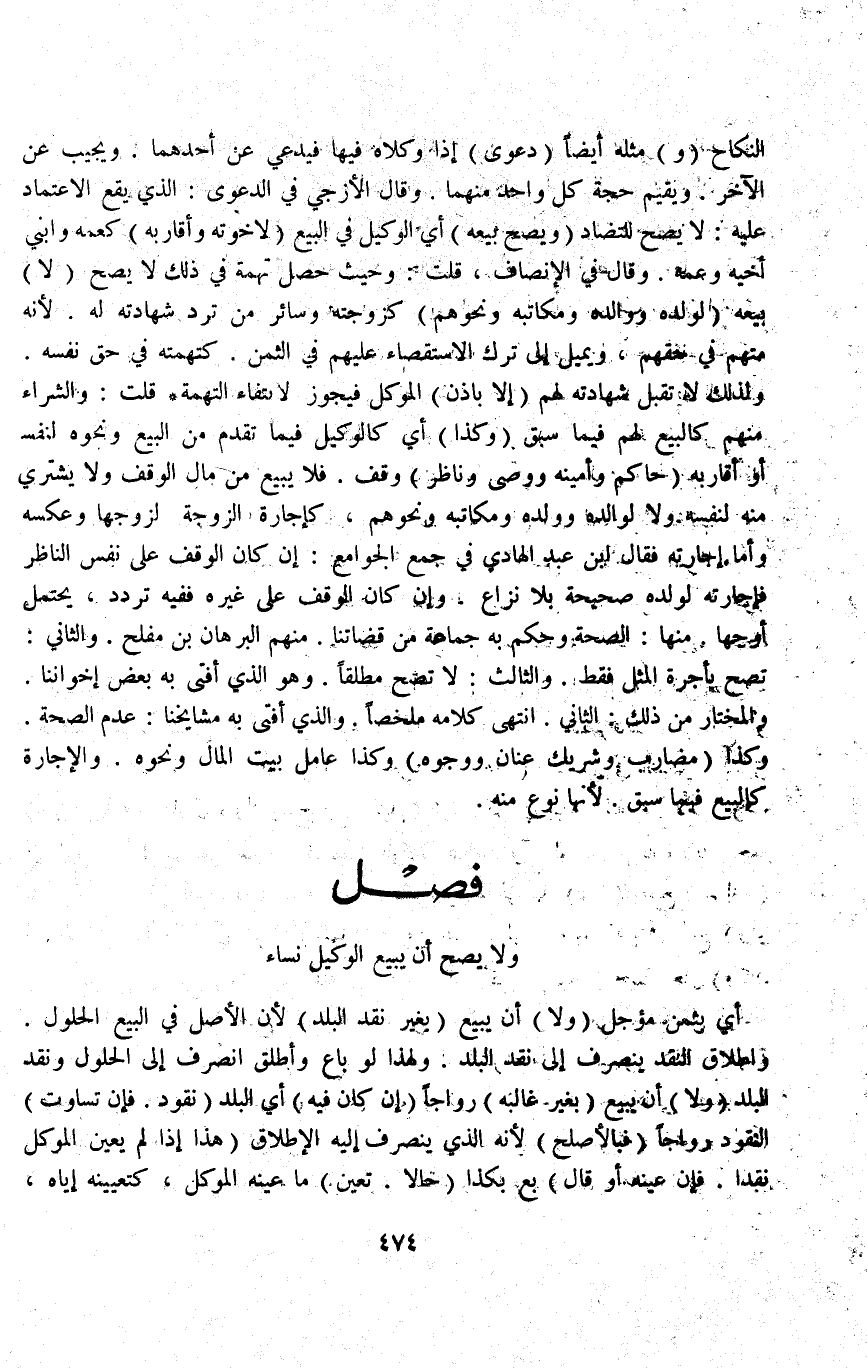 فَصْلٌ (وَلَا يَصِحُّ أَنْ يَبِيعَ الْوَكِيلُ نَسَاءً) أَيْ بِثَمَنٍ مُؤَجَّلٍ (وَلَا) أَنْ يَبِيعَ (بِغَيْرِ نَقْدِ الْبَلَدِ) لِأَنَّ الْأَصْلَ فِي الْبَيْعِ الْحُلُولُ وَإِطْلَاقُ النَّقْدِ يَنْصَرِفُ إلَى نَقْدِ الْبَلَدِ وَلِهَذَا لَوْ بَاعَ وَأَطْلَقَ انْصَرَفَ إلَى الْحُلُولِ وَنَقْدِ الْبَلَدِ (وَلَا) أَنْ يَبِيعَ (بِغَيْرِ غَالِبَةٍ) رَوَاجًا (إنْ كَانَ فِيهِ) أَيْ الْبَلَدِ (نُقُودٌ فَإِنْ تَسَاوَتْ) النُّقُودُ رَوَاجًا (فَبِالْأَصْلَحِ) لِأَنَّهُ الَّذِي يَنْصَرِفُ إلَيْهِ الْإِطْلَاقُ (هَذَا إذَا لَمْ يُعَيِّنْ الْمُوَكِّلُ نَقْدًا فَإِنْ عَيَّنَهُ أَوْ قَالَ) بِعْ بِكَذَا (حَالًّا تَعَيَّنَ) مَا عَيَّنَهُ الْمُوَكِّلُ، كَتَعْيِينِهِ إيَّاهُ،